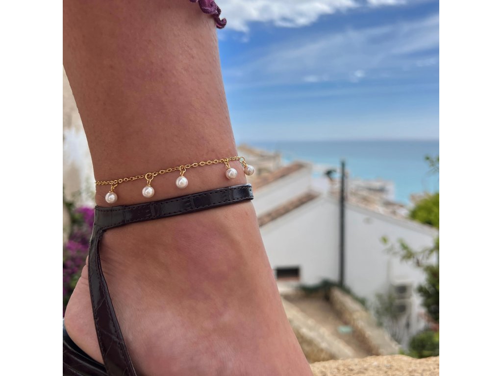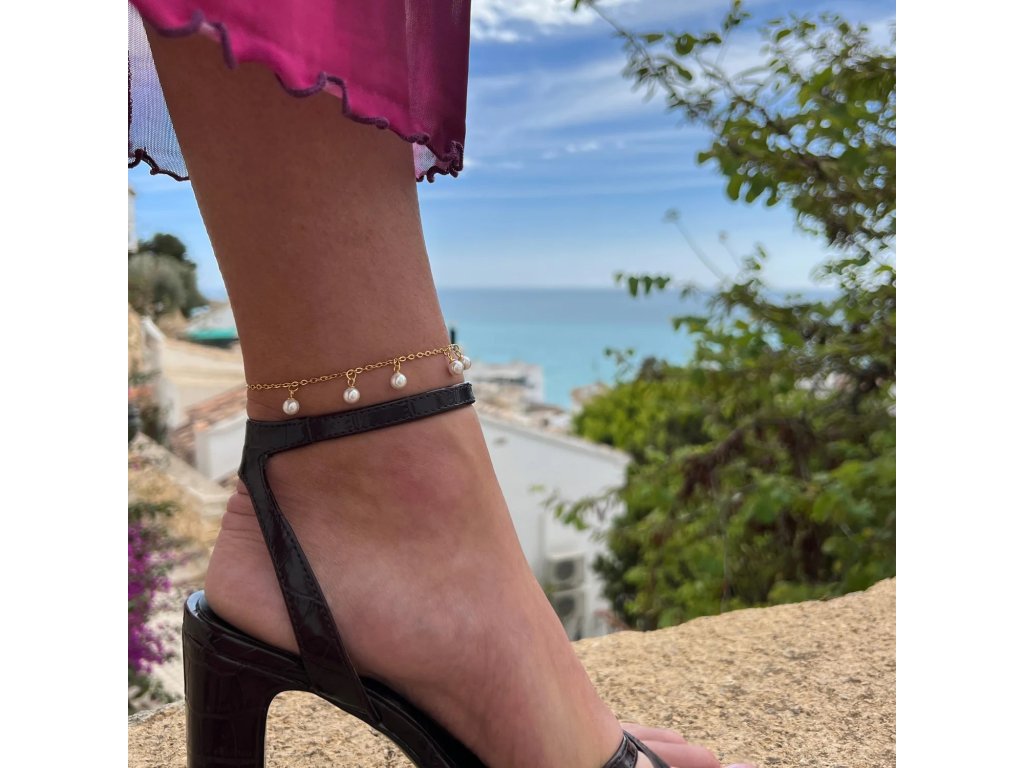 Pearl Drop – náramek na nohu, který propojuje jemný pohyb perel s přirozenou elegancí.