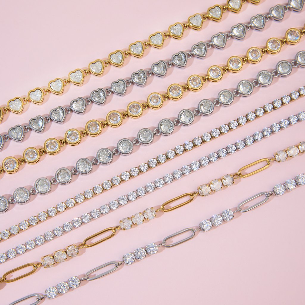Díky pravidelnému osazení působí náramek harmonicky, čistě a luxusně. Je ideální jako samostatný šperk i jako základ pro vrstvení s dalšími náramky.