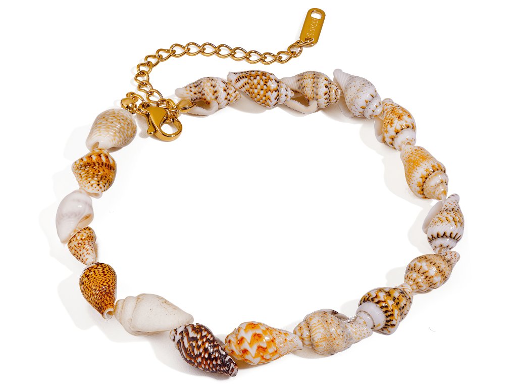 Náramek je tvořen řadou mušliček s rozdílnou kresbou a barevností. Krémové, pískové a hnědé tóny vytvářejí živý, nepravidelný celek, který nepůsobí strojeně ani sladce – ale přirozeně a letně.