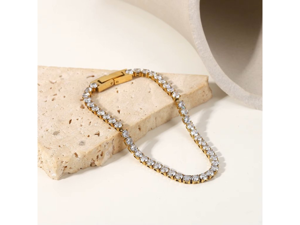 Tennis 3 mm – pozlacený tenisový náramek s jiskřivými zirkony.