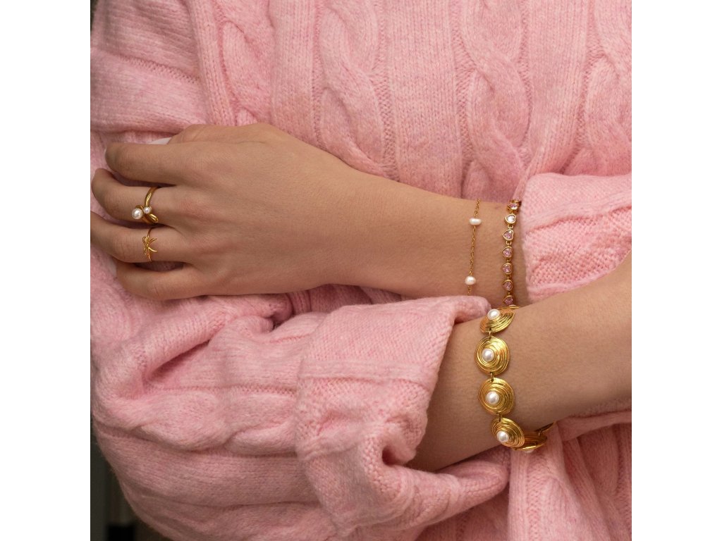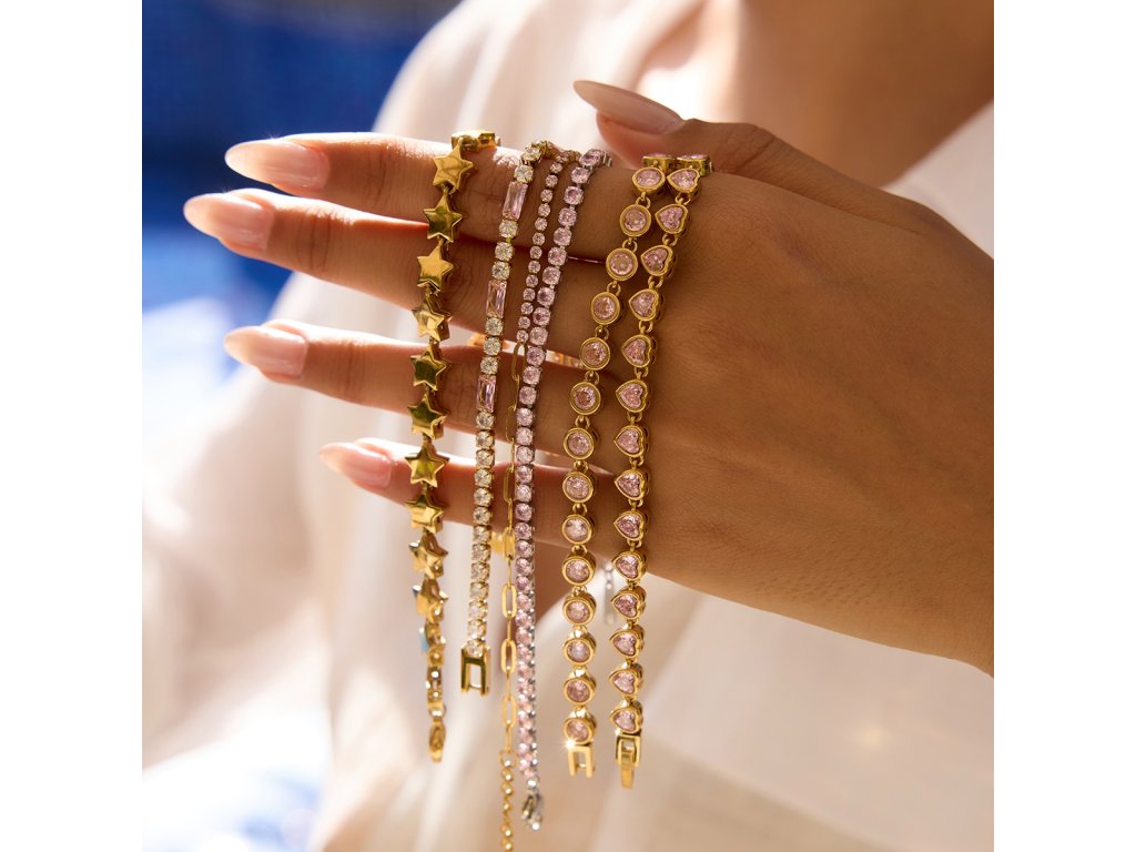 ELENYS Valena Pink Aura pozlacený náramek 18K žluté zlato