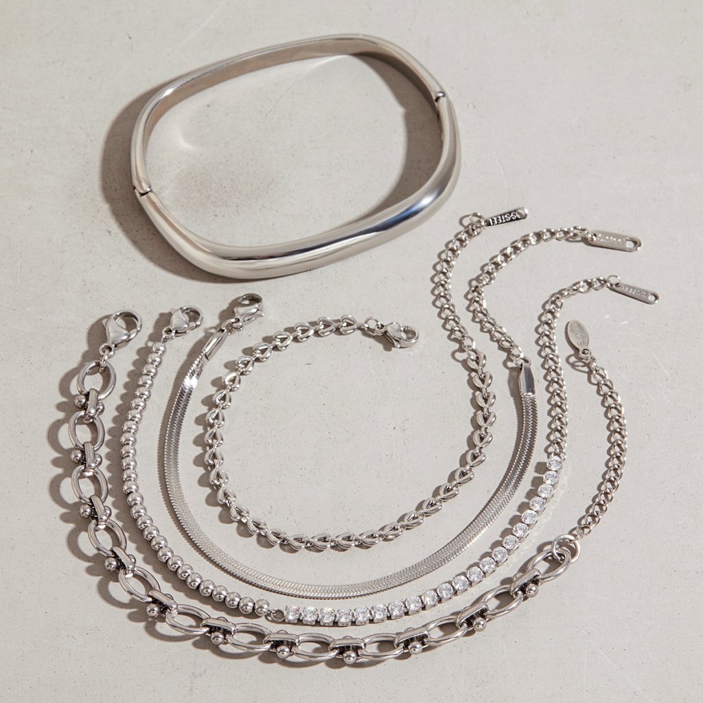 Náramek má délku 17 + 5 cm a je vyroben z hypoalergenní chirurgické oceli 304/316L bez obsahu niklu. Materiál je odolný vůči vodě, poškrábání a ztrátě lesku, což z něj dělá ideální šperk pro každodenní nošení.