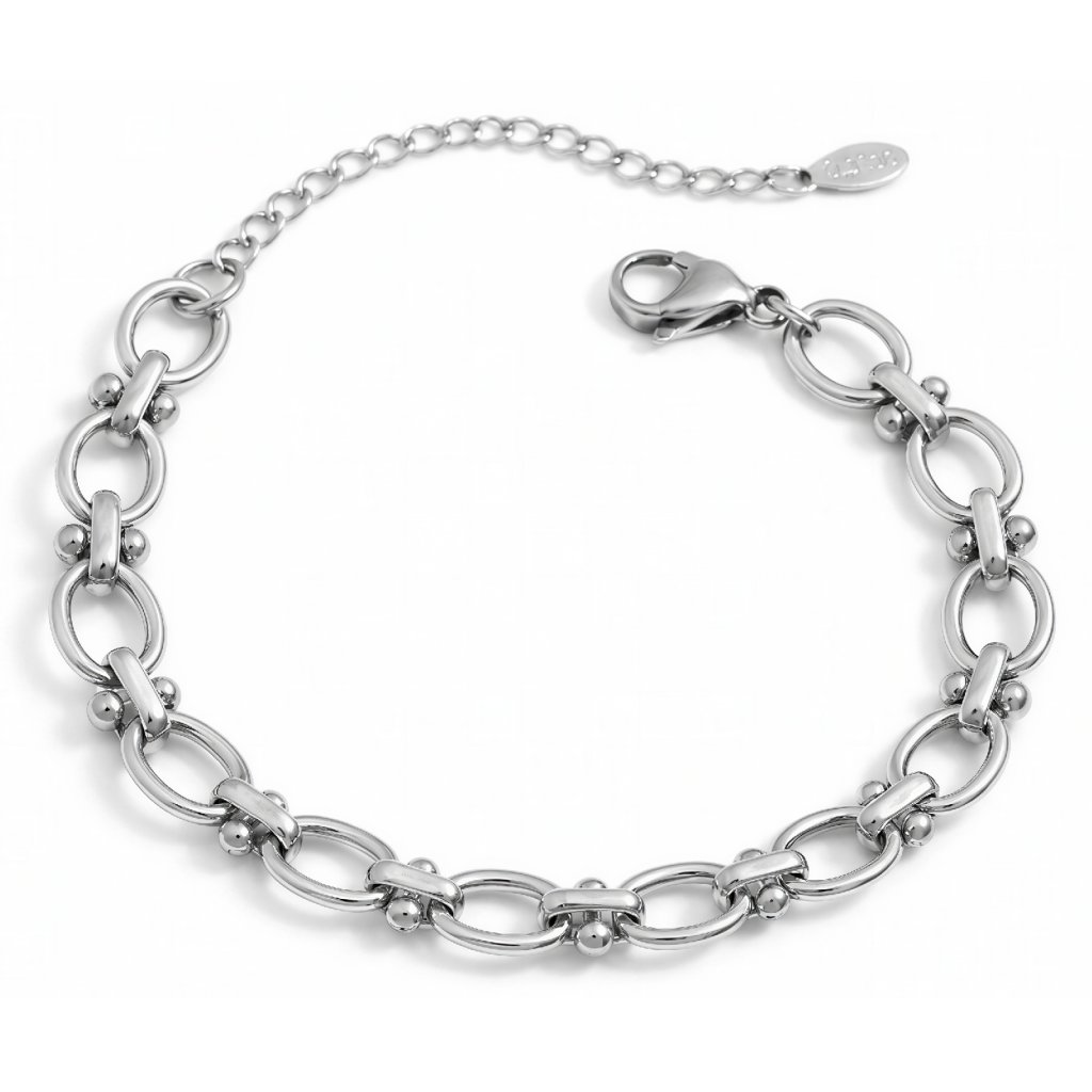 ELENYS Verona Bead tvoří výraznější oválné články doplněné jemnými kuličkami, které dodávají šperku strukturu a jedinečný detail.