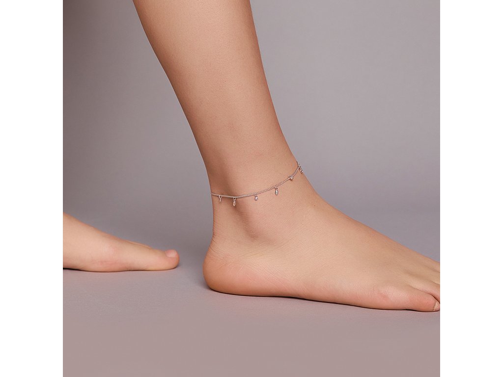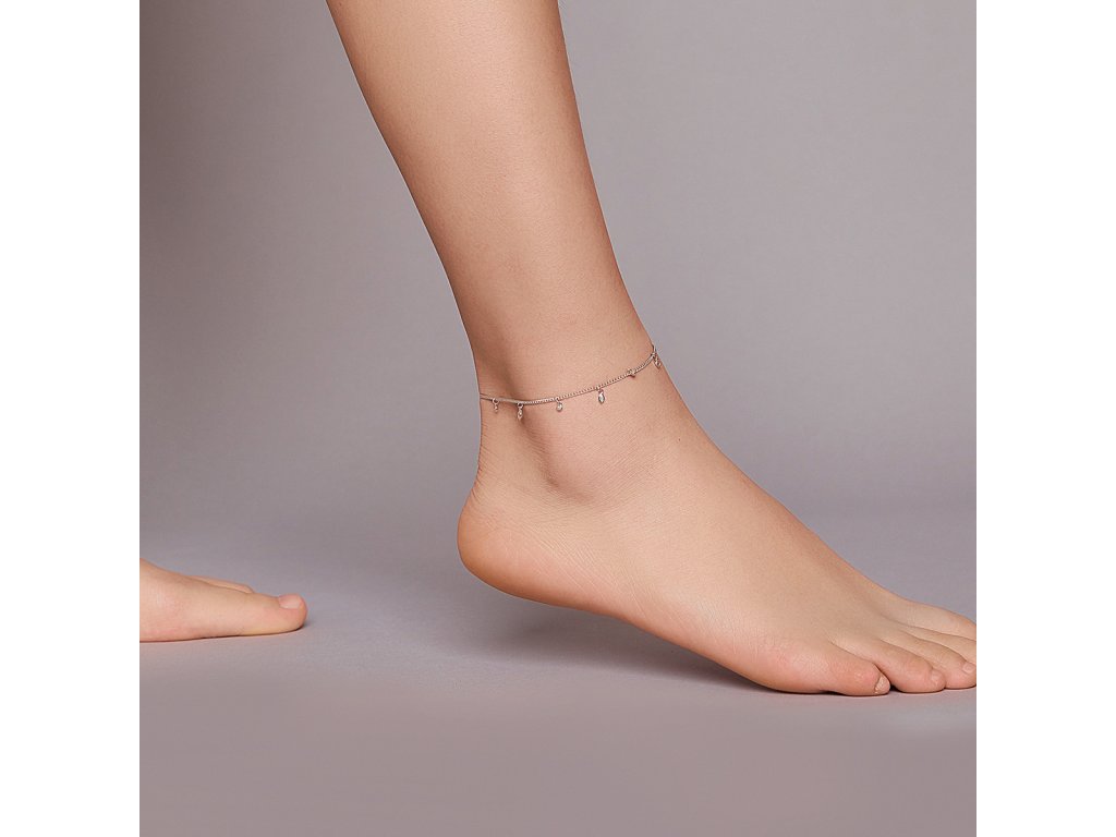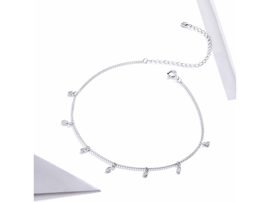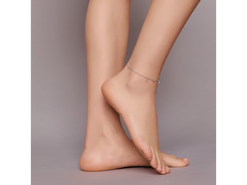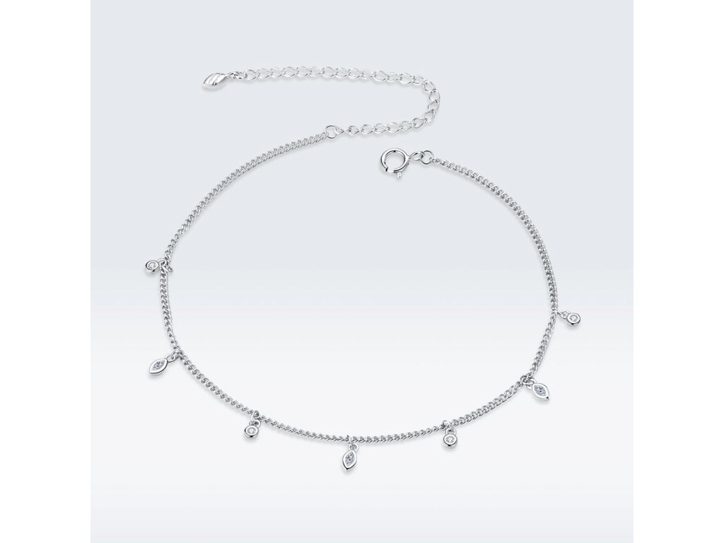 Elenys stříbrný nastavitelný náramek na nohu Čirá kapka