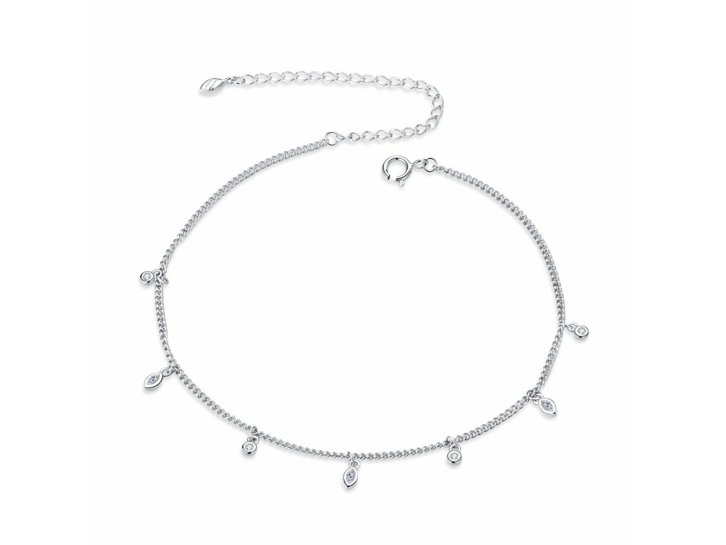 - Stříbrný nastavitelný náramek na nohu nebo na zápěstí v designu minimalistické kapky zdobený čirými třpytivými zirkony. Originální design náramku, kvalitní zpracování a materiál, ručně dohotovené.