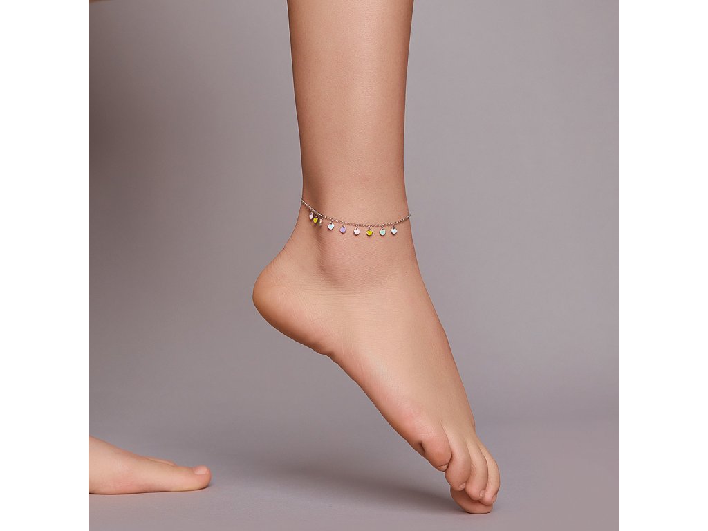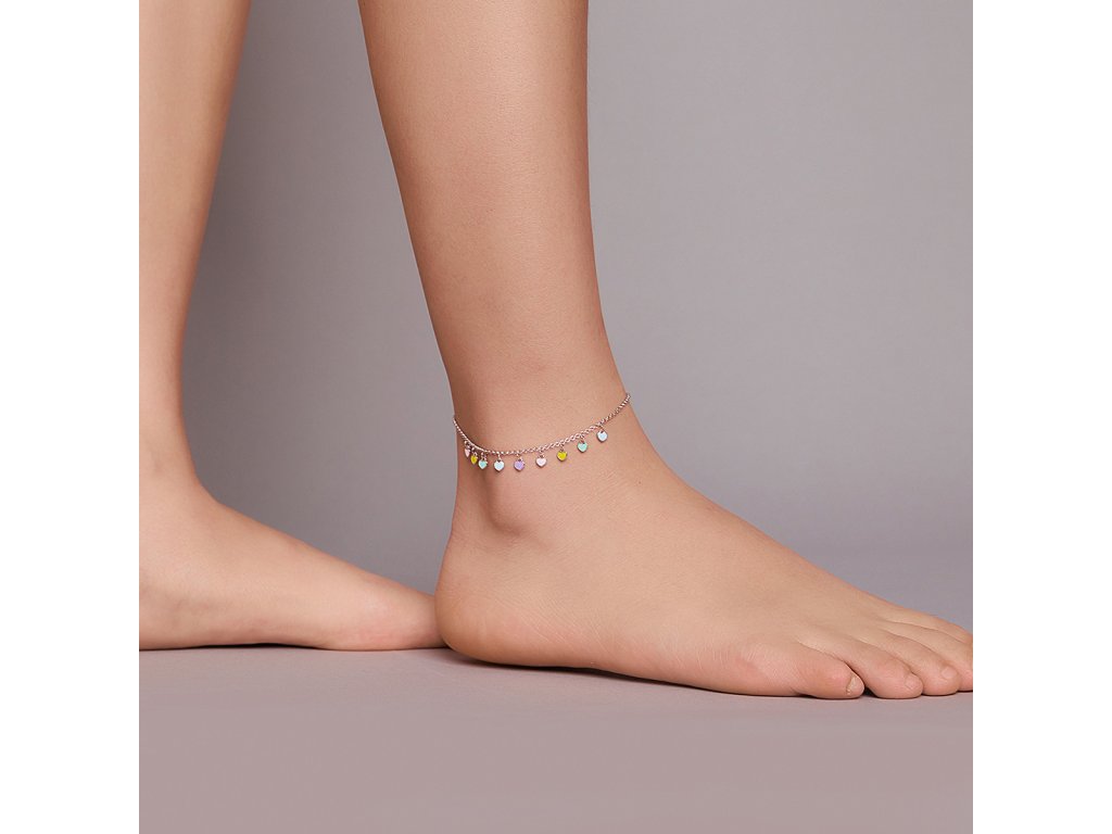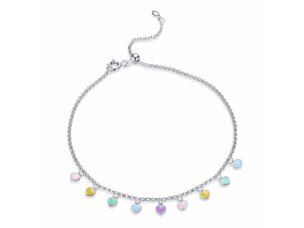 Elenys stříbrný nastavitelný náramek na nohu Duhová srdíčka