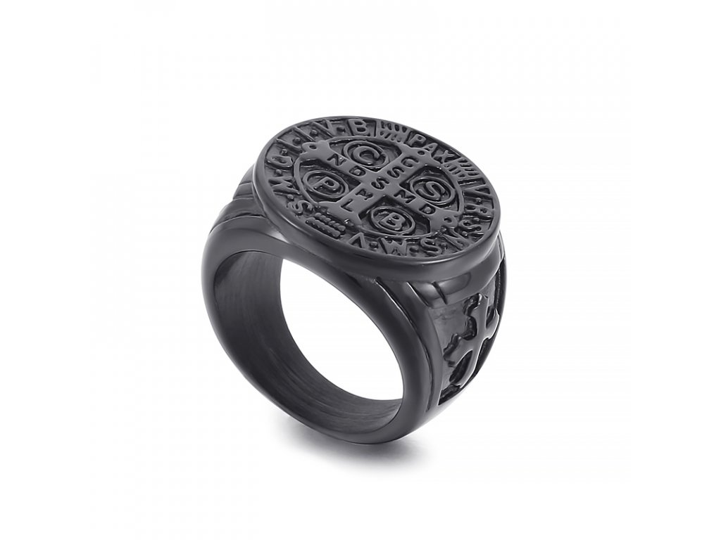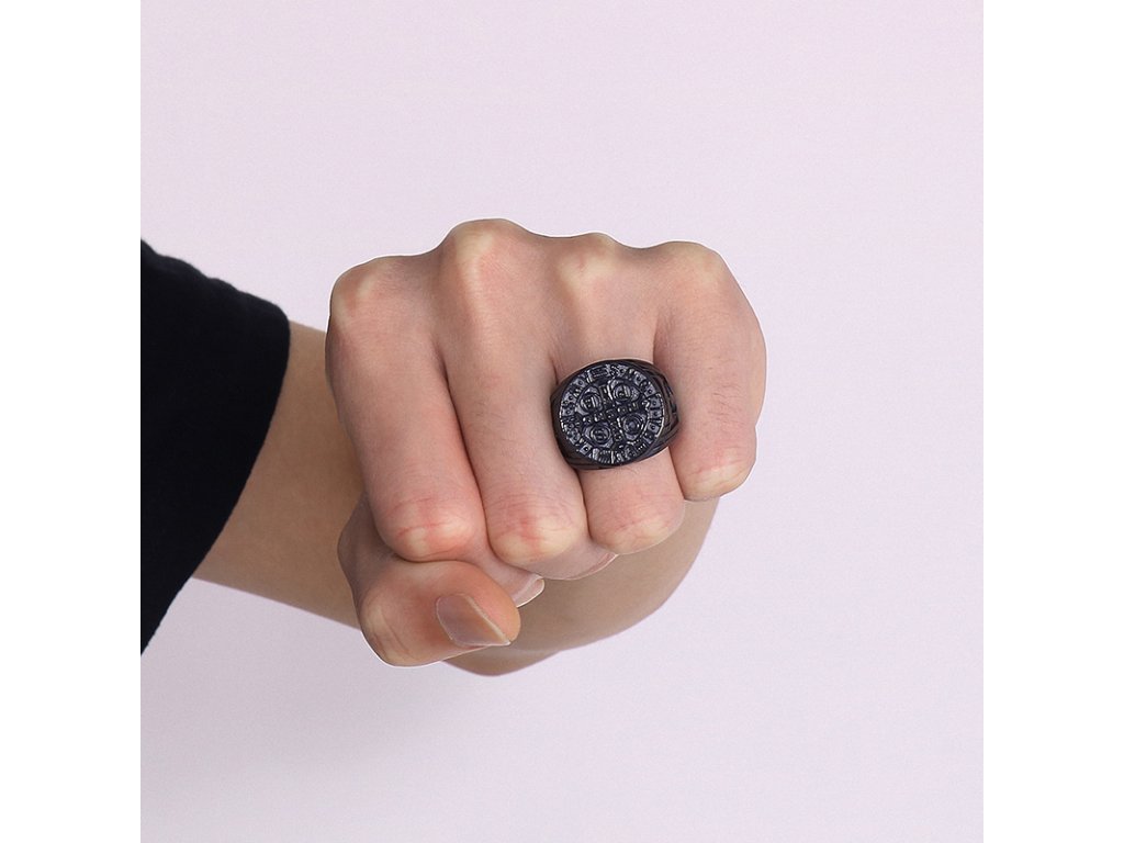 - Pánský černý prsten z chirurgické oceli s křížem. Originální design prstenu, kvalitní zpracování a materiál.