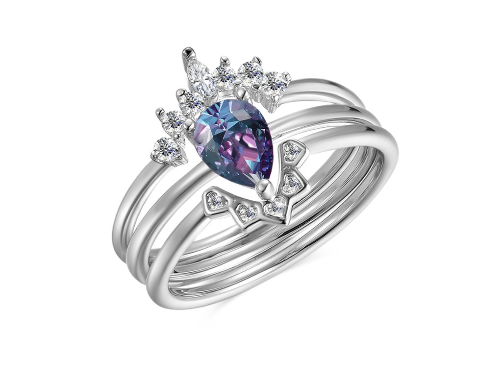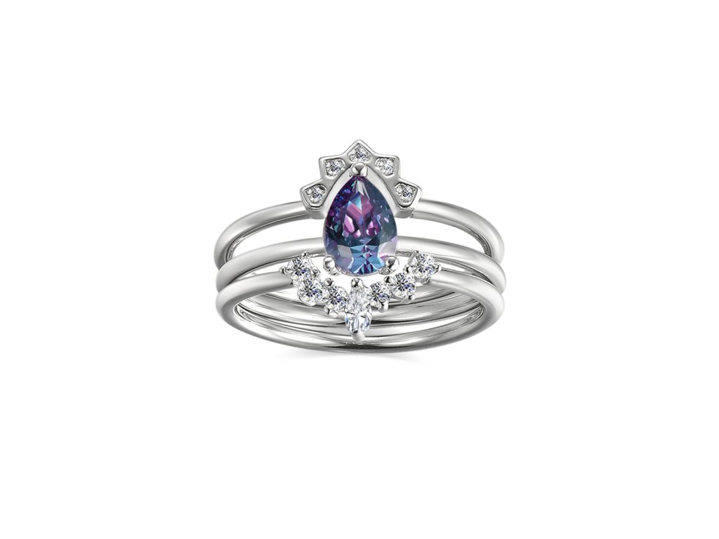 Elenys prsten Solenne – Alexandrit, 18K pozlacení, sada 3 ks