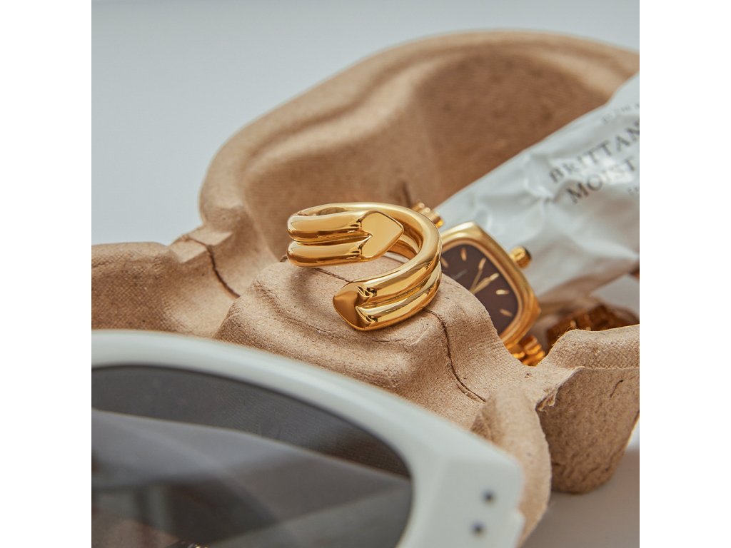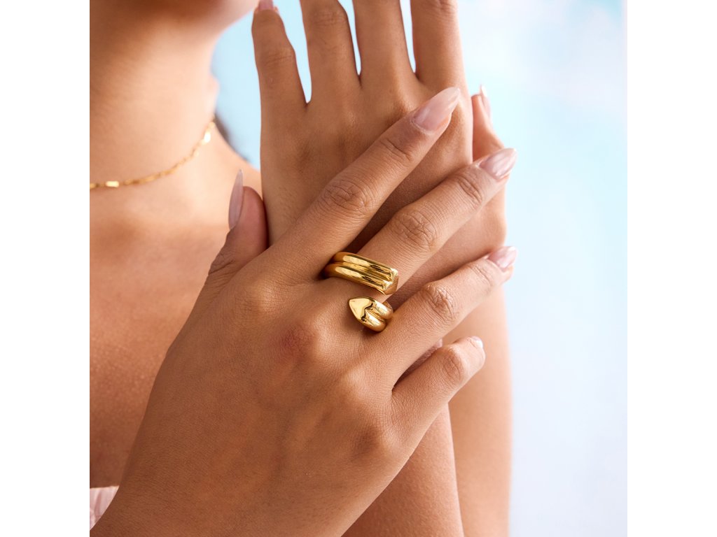 Prsten má otevřený design, který se jemně přizpůsobí prstu. Jeho hladký, lesklý povrch odráží světlo s každým pohybem ruky a vypadá nádherně samostatně i v kombinaci s dalšími šperky ELENYS.