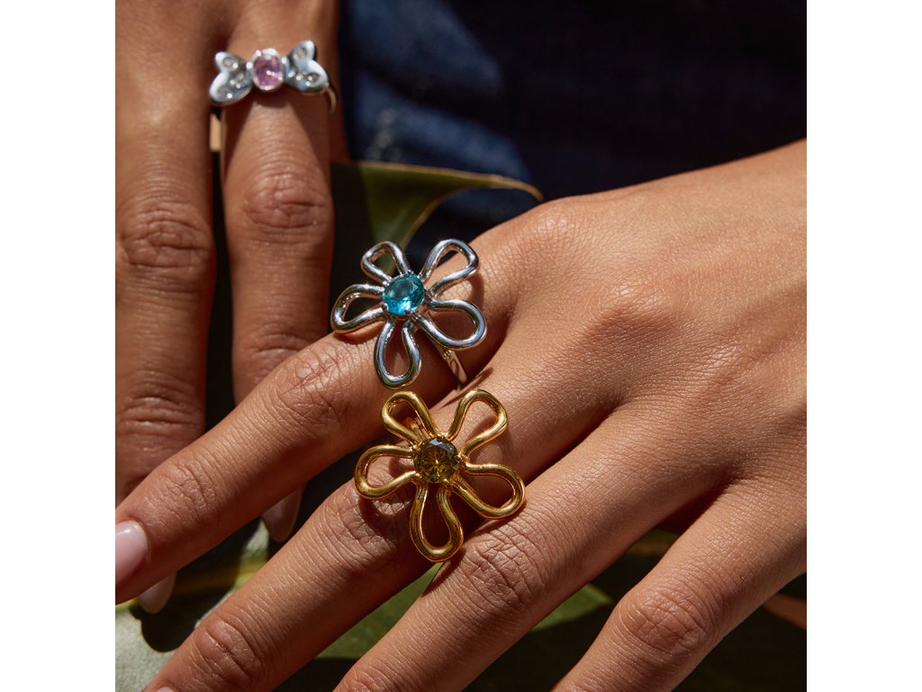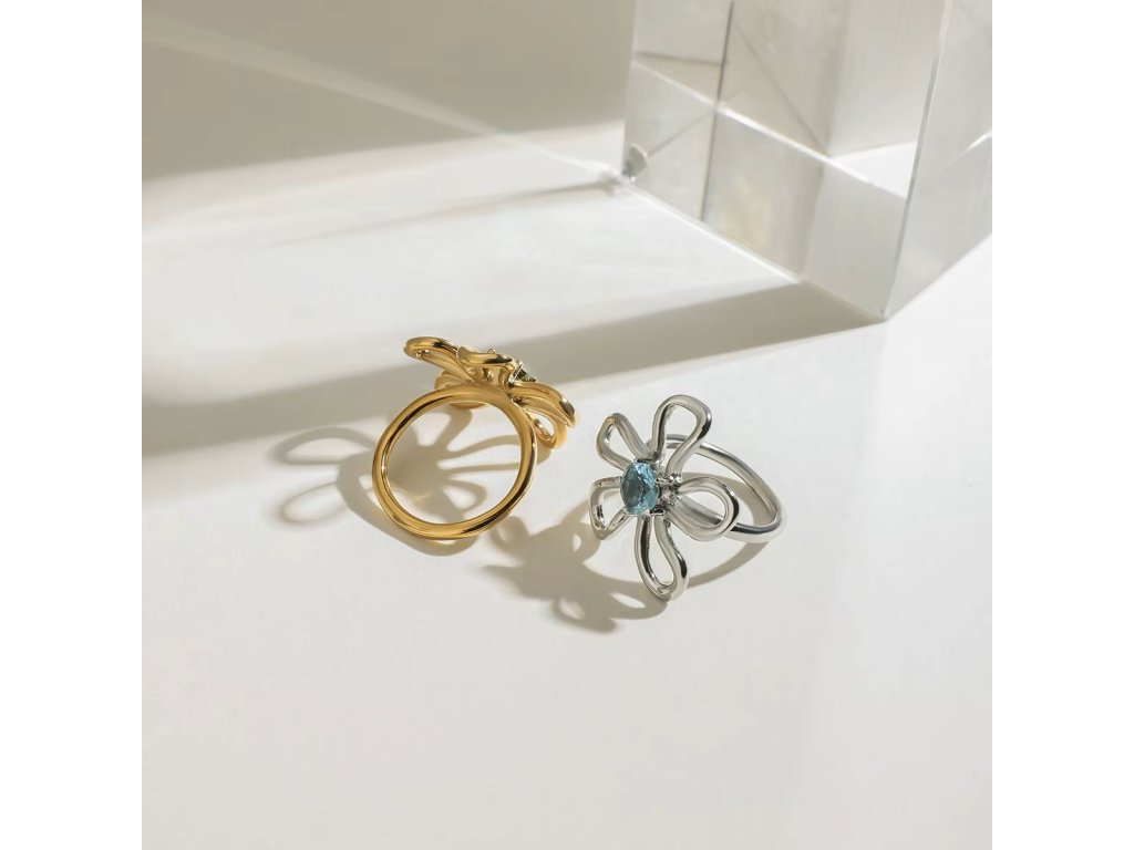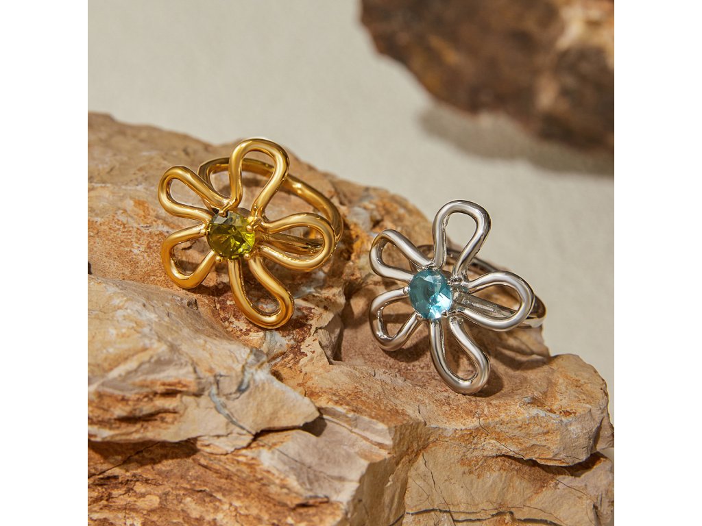 Otevřený květ v lesklé stříbrné oceli – jemný a moderní prsten, který rozkvétá světlem a čistotou.