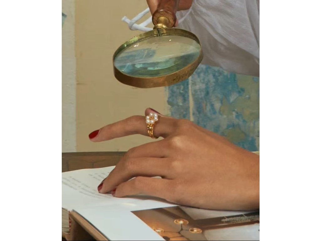 Flower Pearl je detail, který působí něžně k nude nehtům a hedvábné blůzce, ale stejně skvěle sedí i k džínům a červenému laku. Čistě ženský akcent, který dodá jemnost celé ruce.