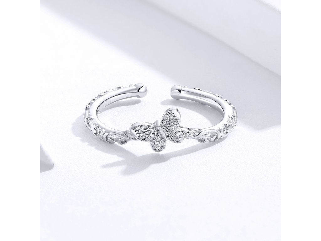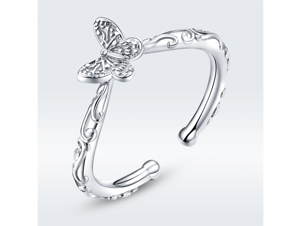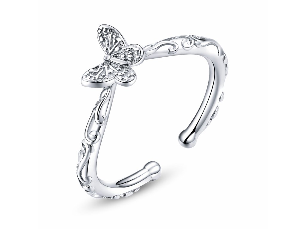 - Stříbrný nastavitelný prsten v designu Krásného propracovaného motýlu. Originální design prstenu, kvalitní zpracování a materiál, ručně dohotovené.