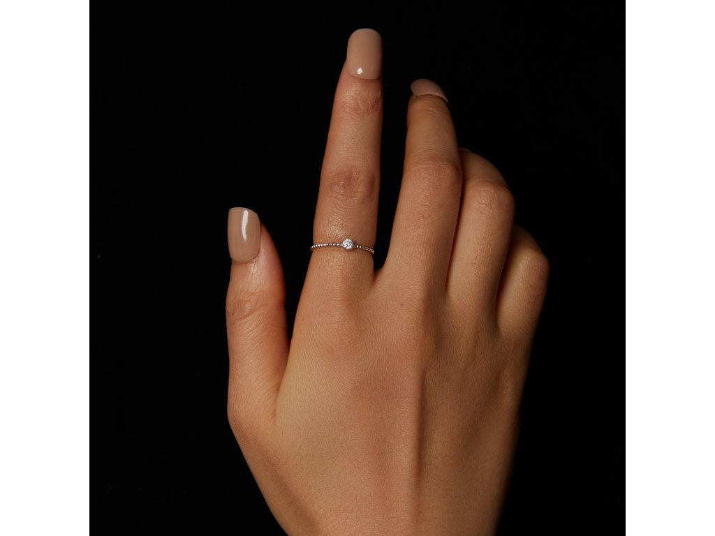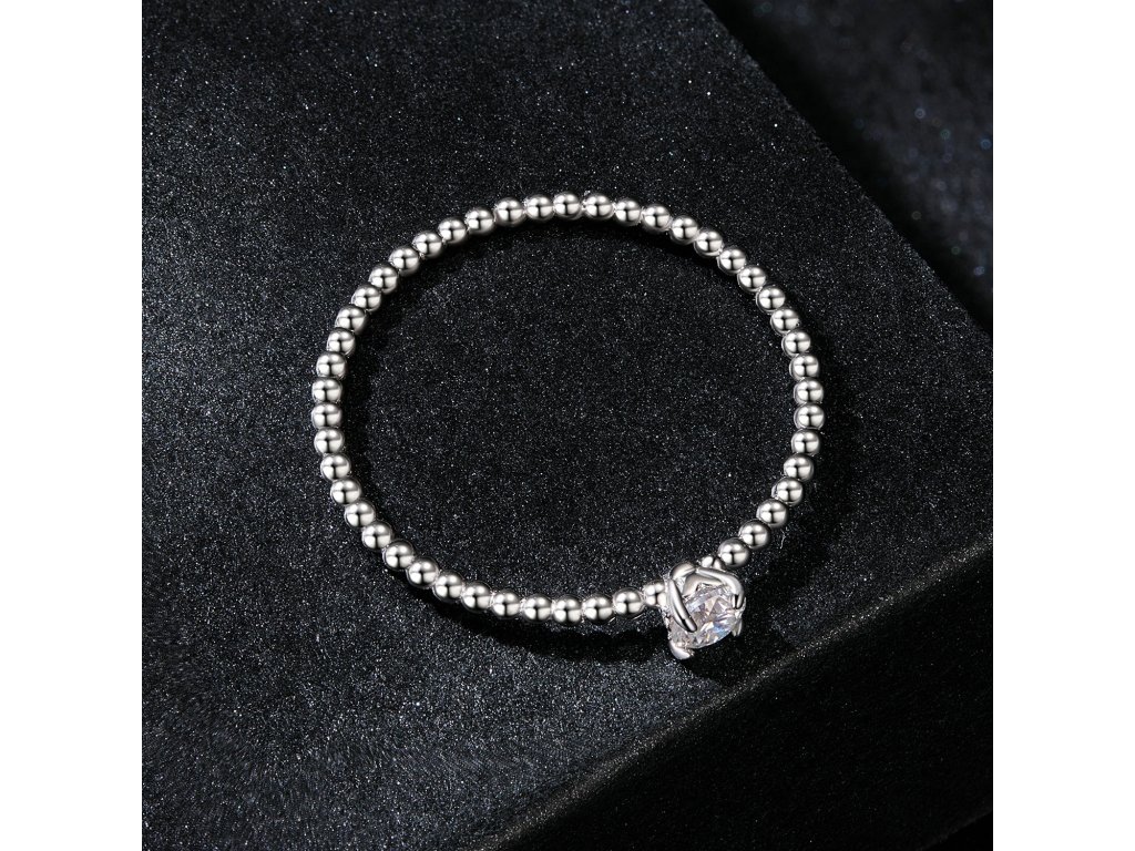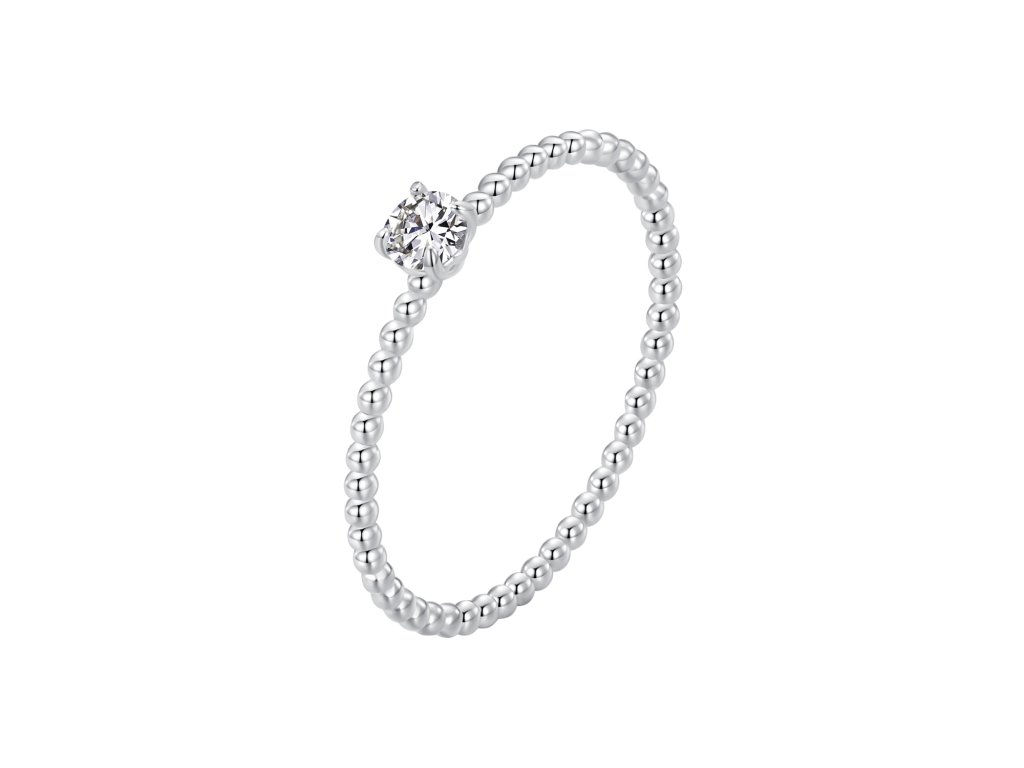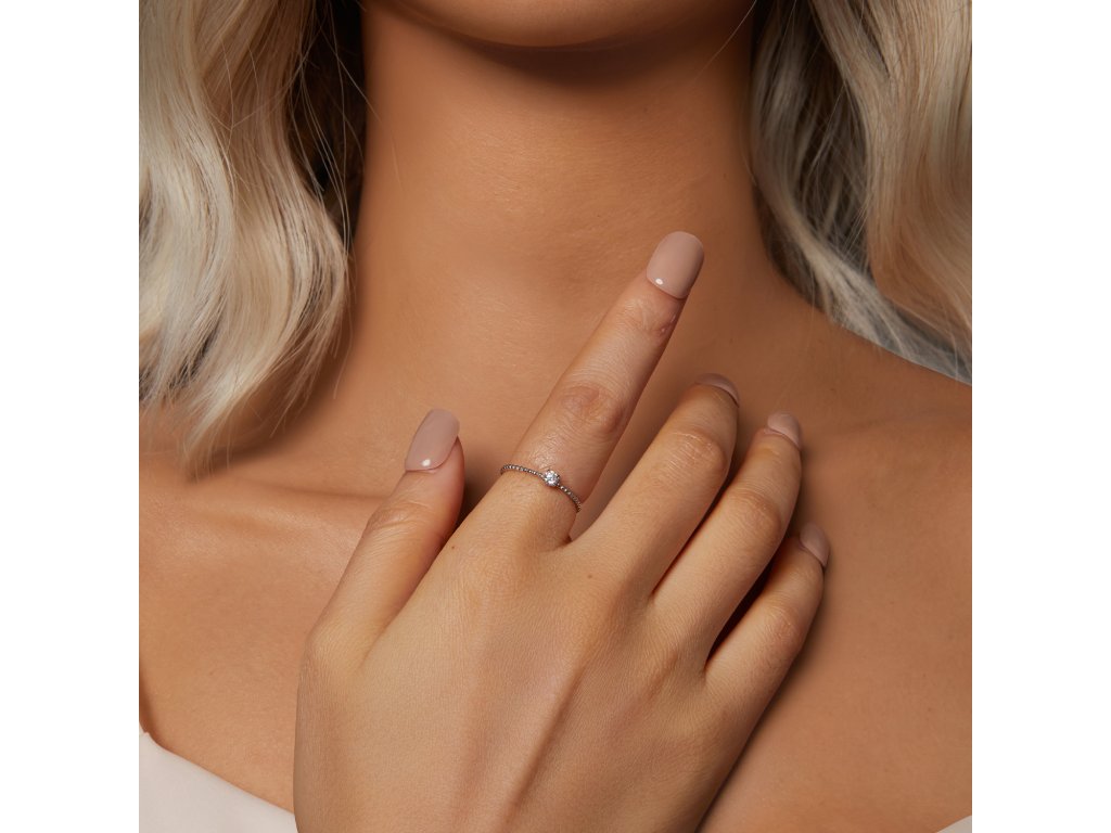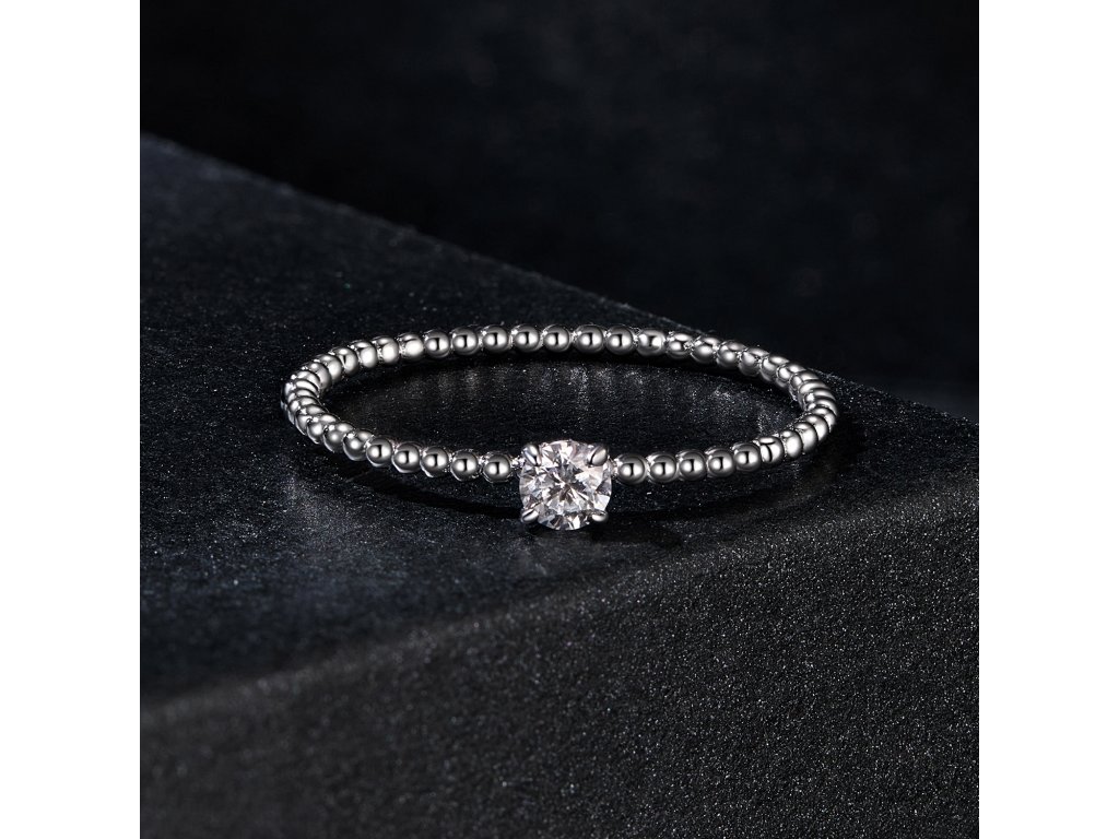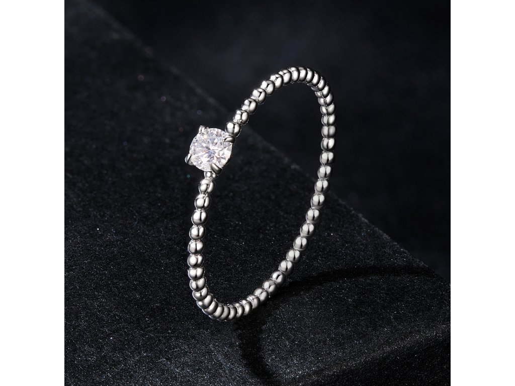 Elegantní prsten s drahokamem moissanitem, precizně vyrobený z kvalitního sterlingového stříbra a pozlacený 18k bílým zlatem. Ručně dokončované detaily dodávají každému kousku jedinečný charakter, díky čemuž se stává ideálním doplňkem pro slavnostní okamžiky i každodenní eleganci. - Stříbro ryzost Ag 925/1000, 18k bílé zlato, drahokam moissanit.