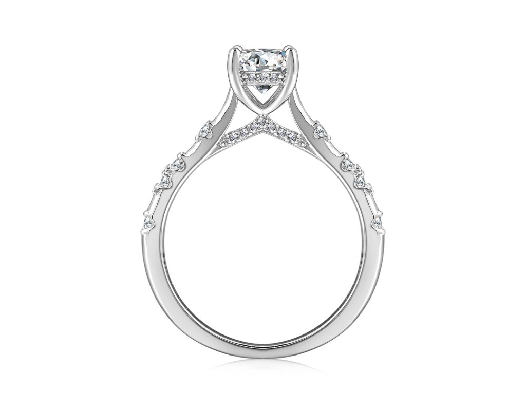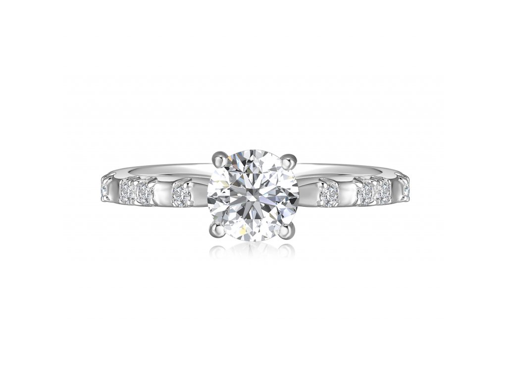 - Stříbrný pozlacený prsten 18k bílým zlatem zdobený zářivým drahokamem moissanitem a okolními třpytivými zirkony. Originální design prstenu, kvalitní zpracování a materiál, ručně dohotovené.