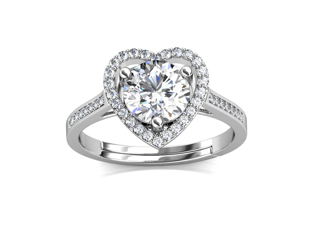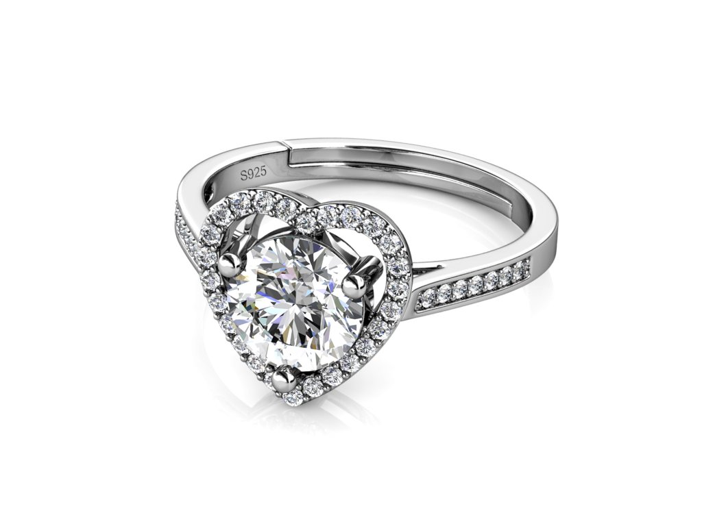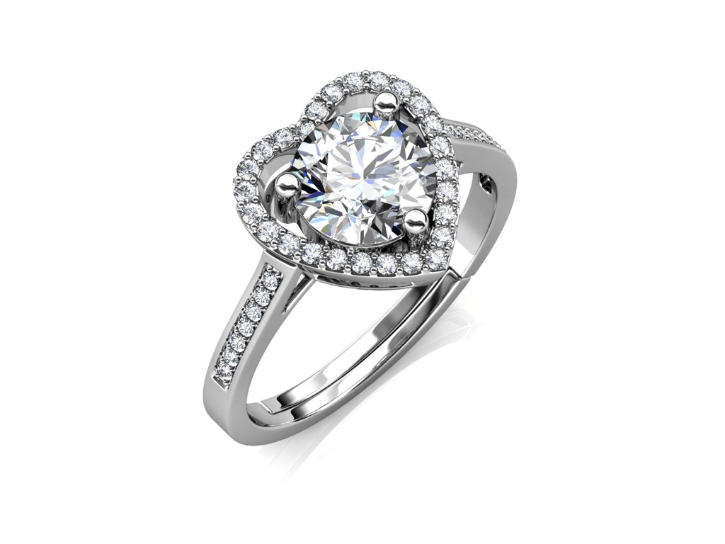 Elenys pozlacený prsten Srdce s drahokamem moissanitem 18K bílé zlato