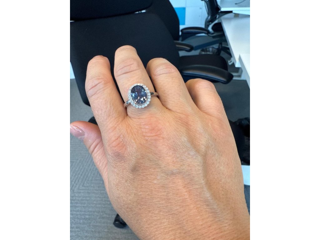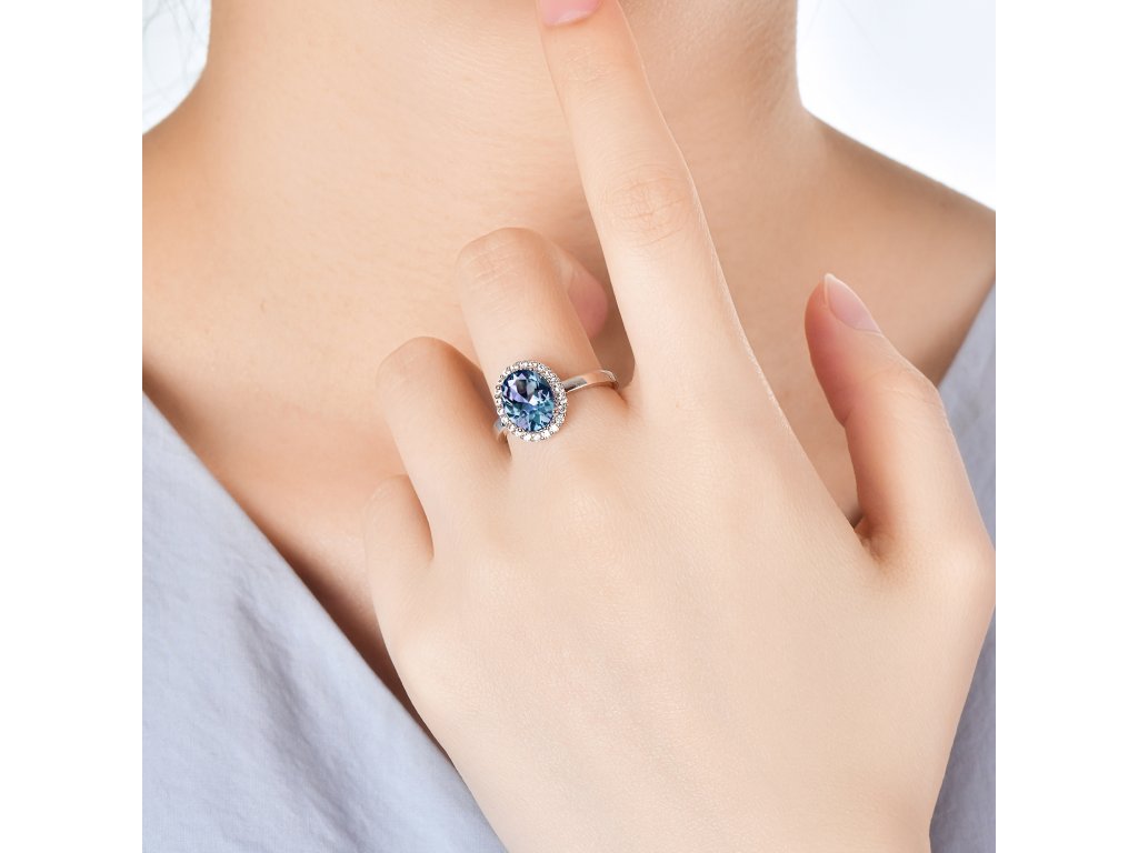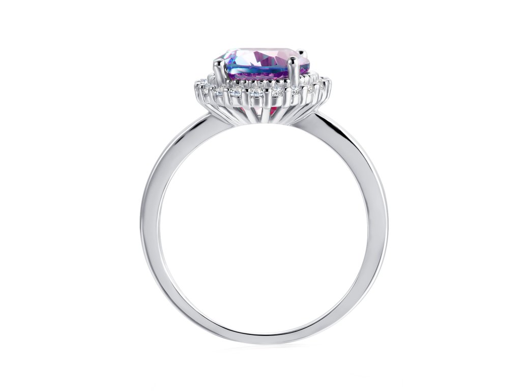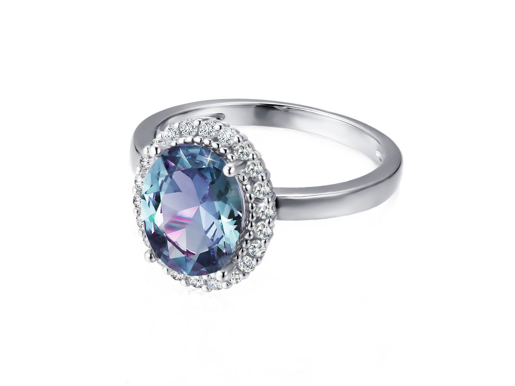 - Hypoalergení stříbrný prsten pozlacený 18 karátovým bílým zlatem zdobený Alexandritem a zirkony. Originální design prstenu, kvalitní zpracování a materiál, ručně dohotovené.