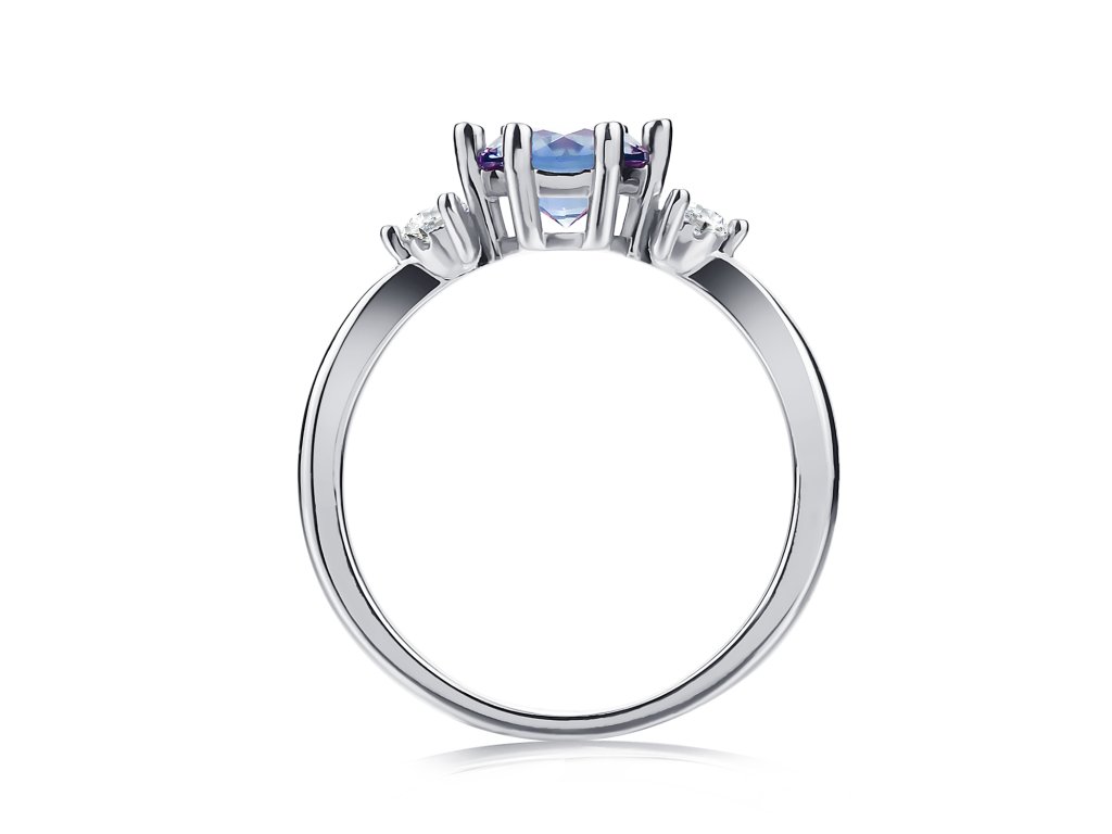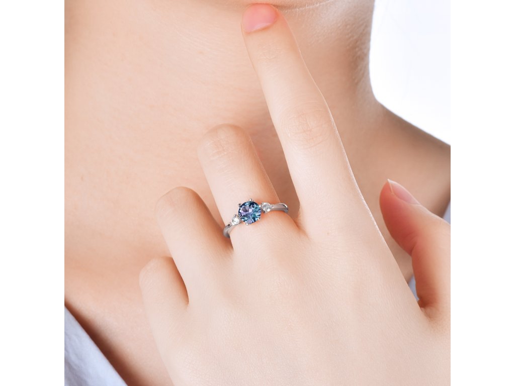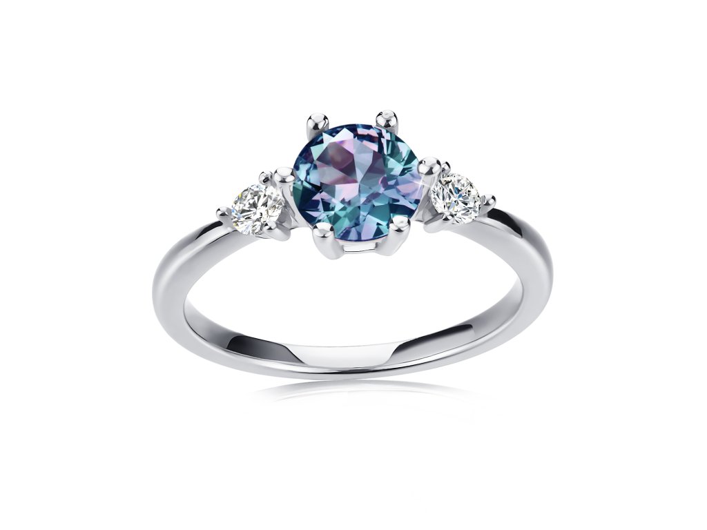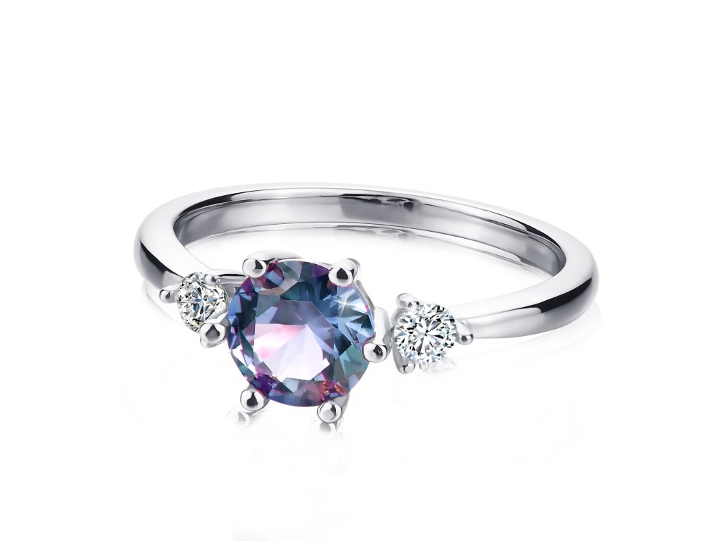 - Hypoalergení stříbrný prsten pozlacený 18 karátovým bílým zlatem zdobený Alexandritem a zirkony. Originální design prstenu, kvalitní zpracování a materiál, ručně dohotovené.