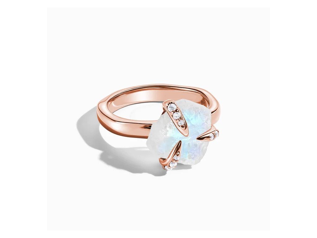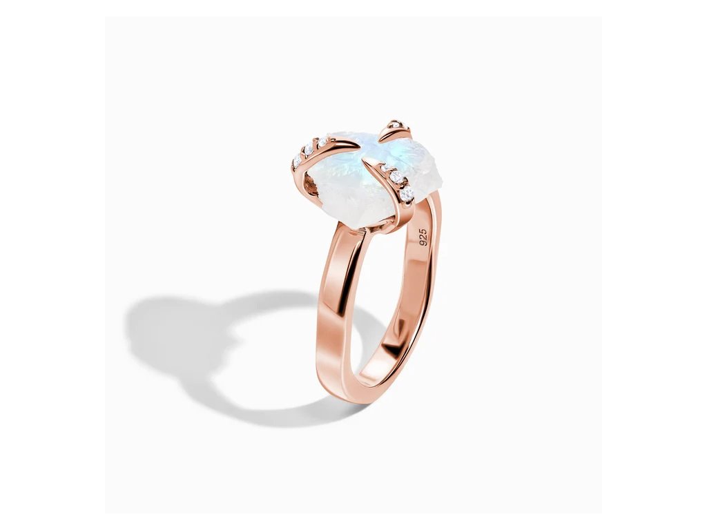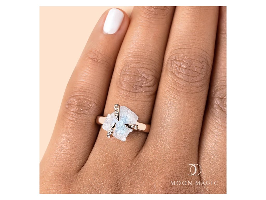 Vzpomeňte si na dobré časy a oslavte budoucnost s naším ručně vyrobeným Raw prstenem - Klid v duši. Tento odvážný prsten je zasazen do tří nápadných drápů, pokrytých pravým bílým drahokamem topazem. Tento jedinečný kousek čerpá z energie měsíčního kamene, aby vedl vaši intuici a pomohl vám cítit se při zemi každý den.