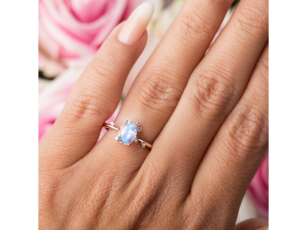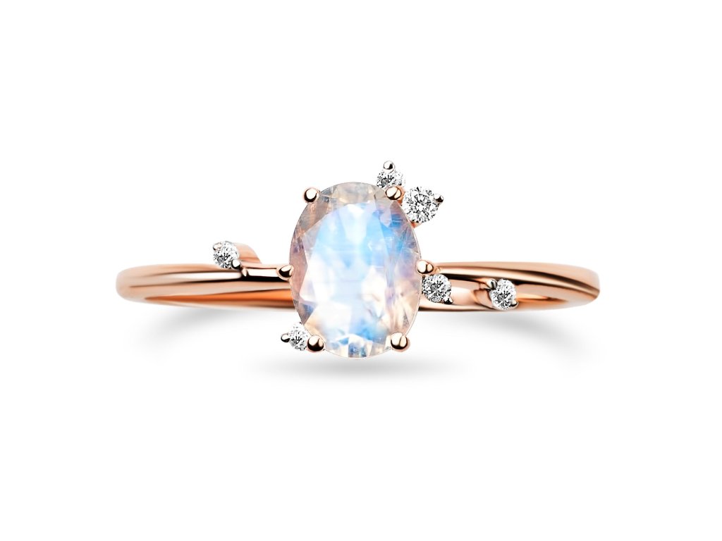 Elenys prsten s měsíčním drahokamem Lístky 14K růžové zlato Vermeil