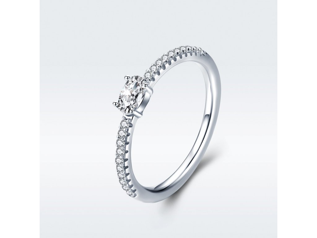 - Stříbrný prsten v designu Třpytivé elegance zdobený čirými zirkony. Originální design prstenu, kvalitní zpracování a materiál, ručně dohotovené.