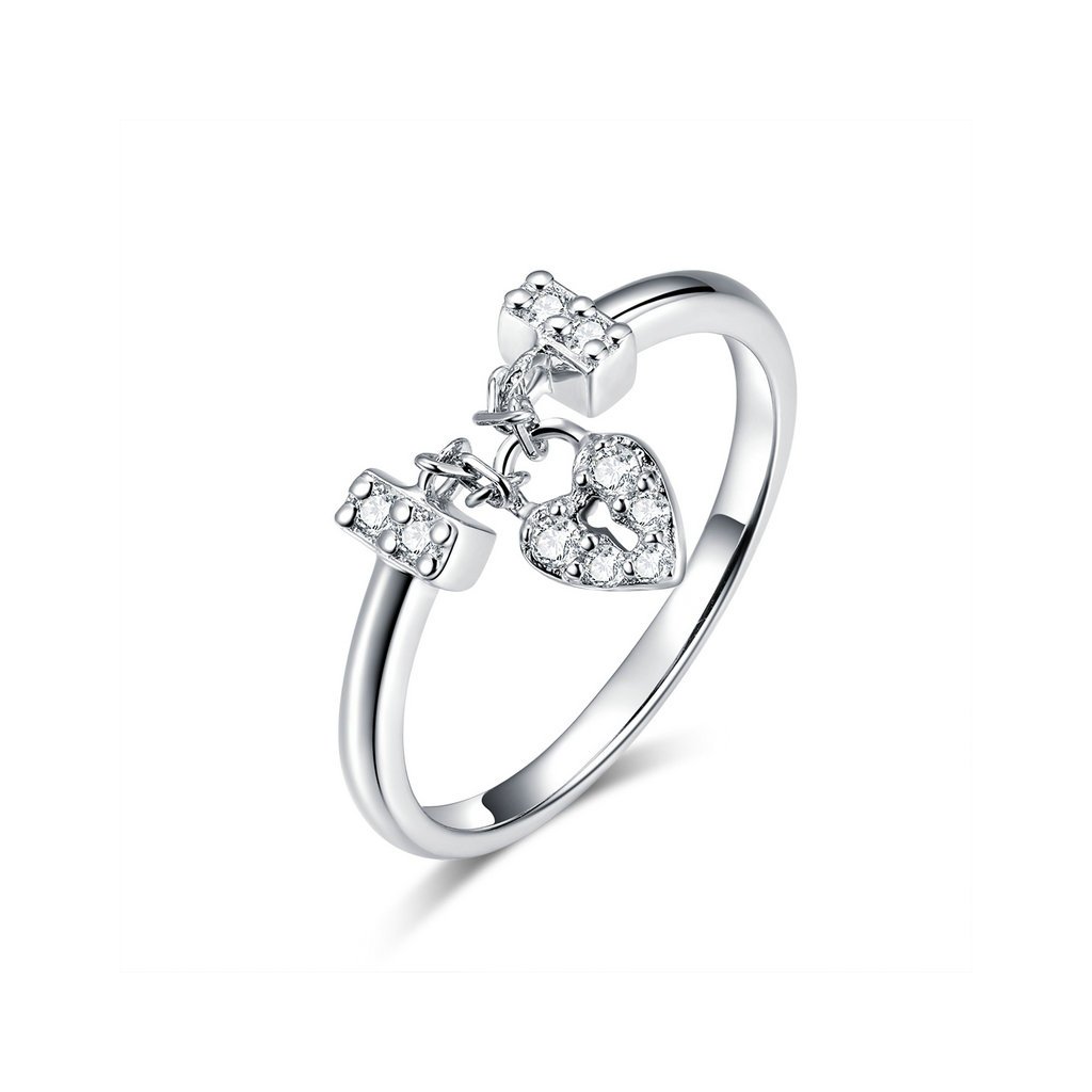 Luxusní stříbrný prsten v designu zámek lásky v podobě srdce zdobeného čirými zirkony. Originální design prstenu, kvalitní zpracování a materiál, ručně dohotovené.