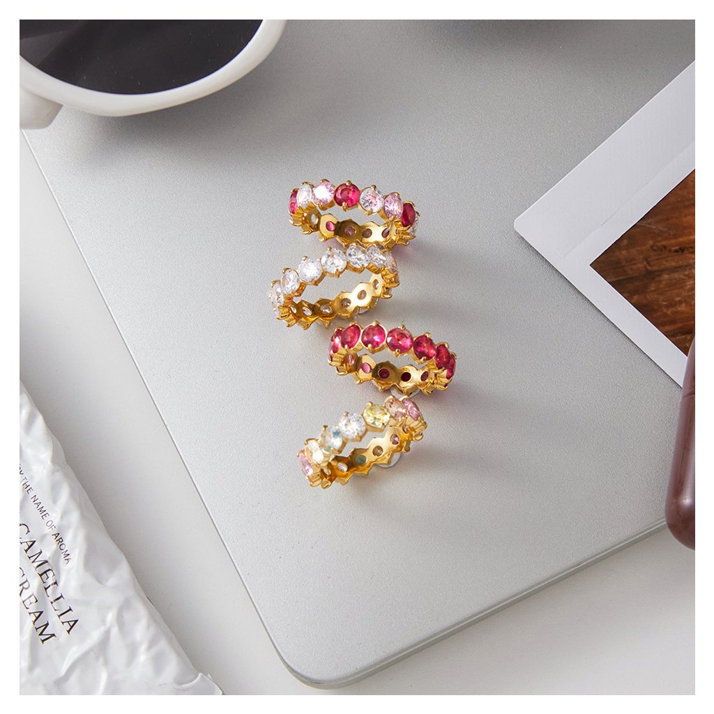 ELENYS Radiant Candy tvoří kombinace vícebarevných zirkonů, které zachycují světlo v různých odstínech a vytvářejí hravý, ale stále elegantní efekt. Každý kámen přidává prstenu jedinečný charakter.