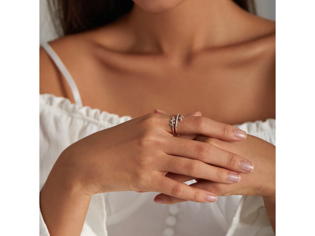 Elenys stříbrný nastavitelný prsten Elegantní lístky