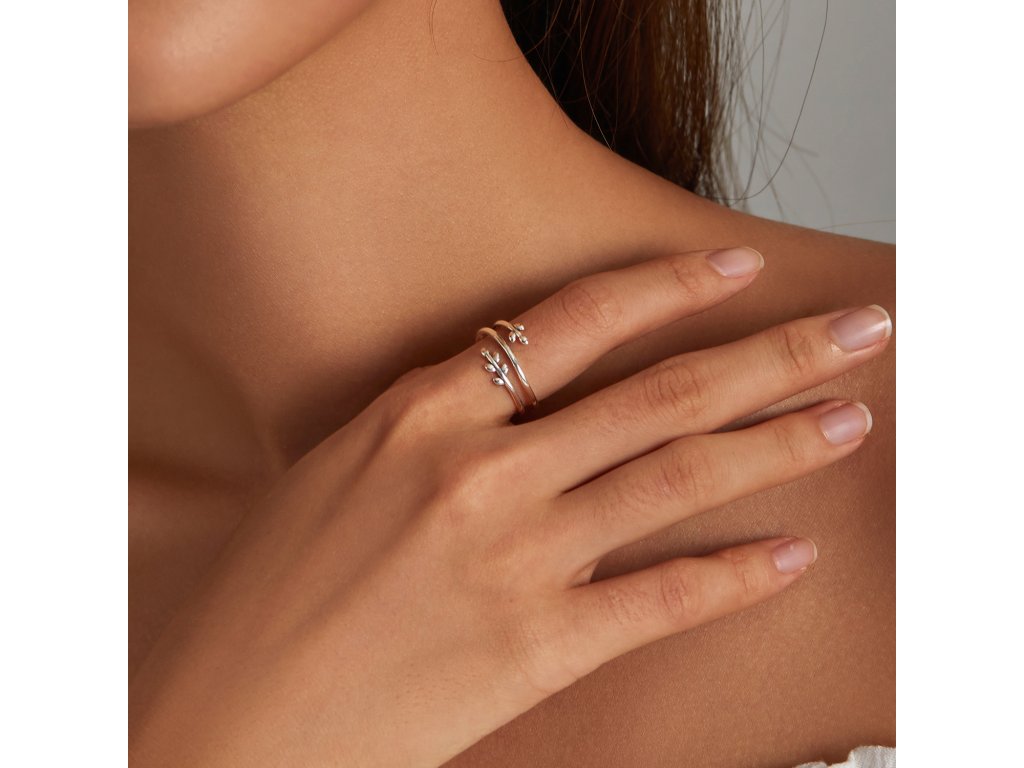 - Stříbrný nastavitelný prsten v elegantním a jemném designu lístků. Originální design prstenu, kvalitní zpracování a materiál, ručně dohotovené.