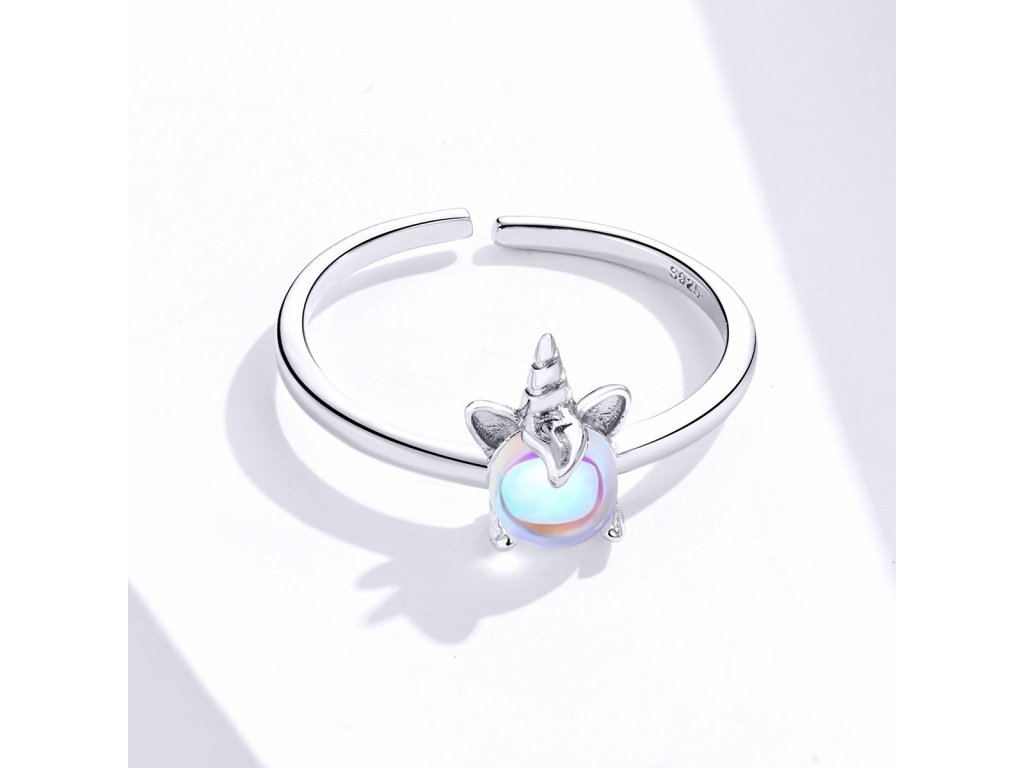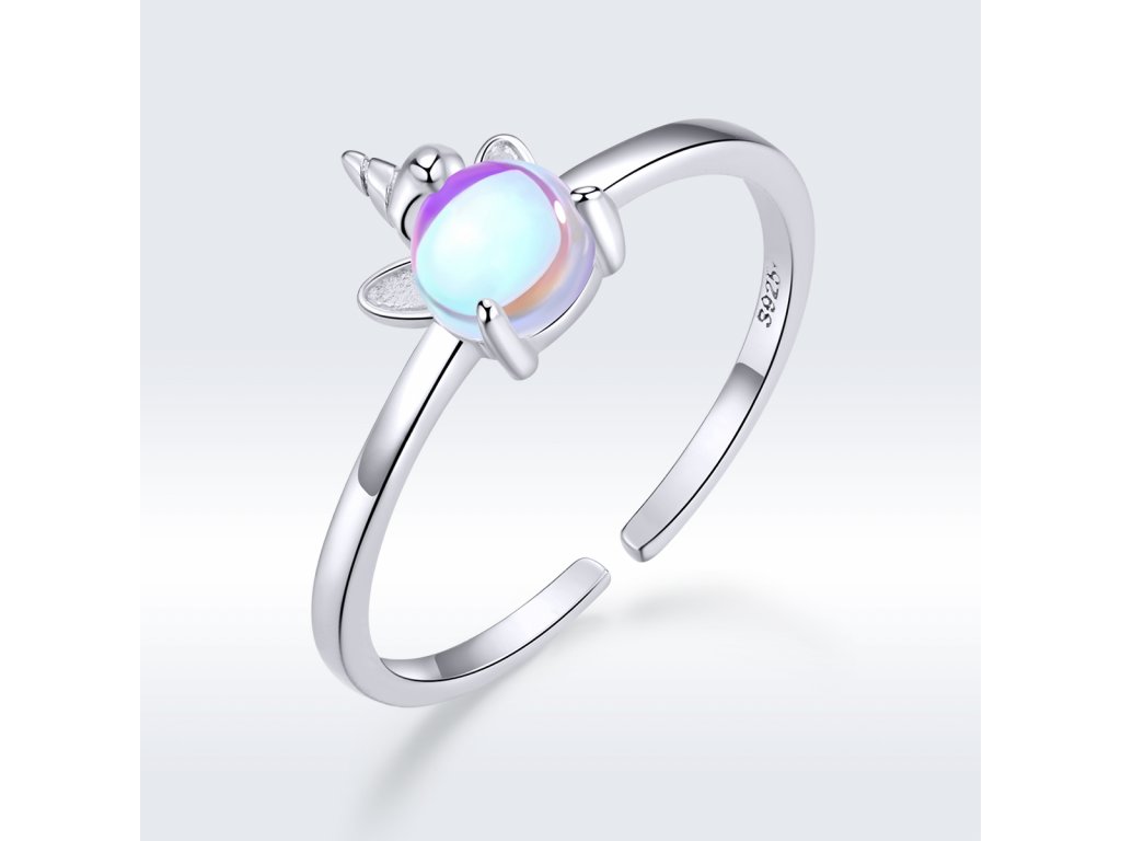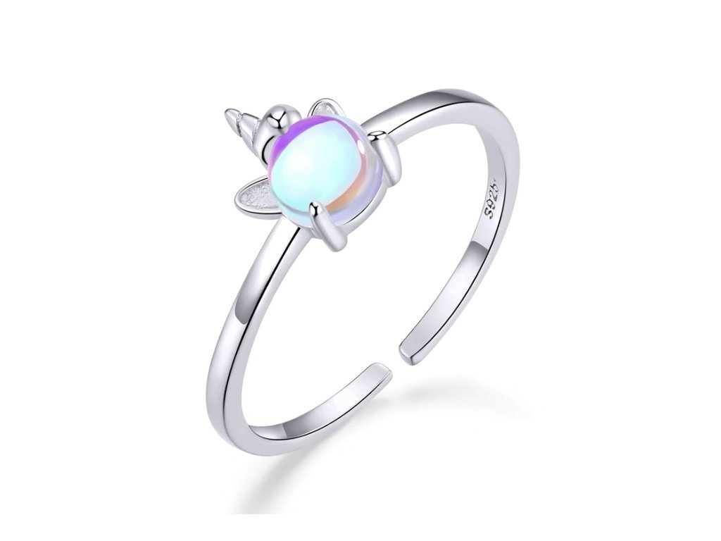 - Stříbrný nastavitelný prsten v designu Jednorožce Unicorna zdobeného měsíčním kamenem. Originální design prstenu, kvalitní zpracování a materiál, ručně dohotovené.