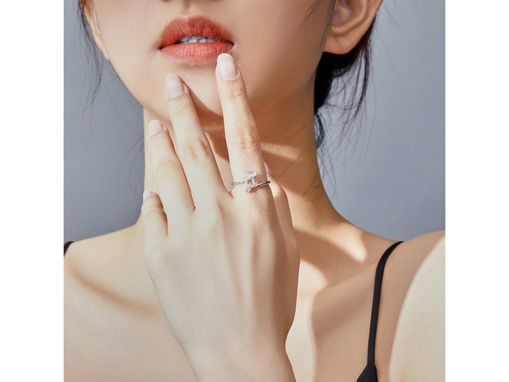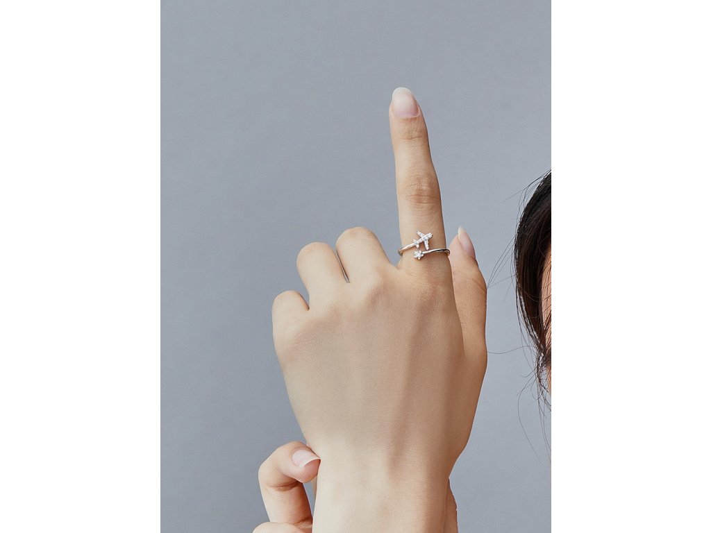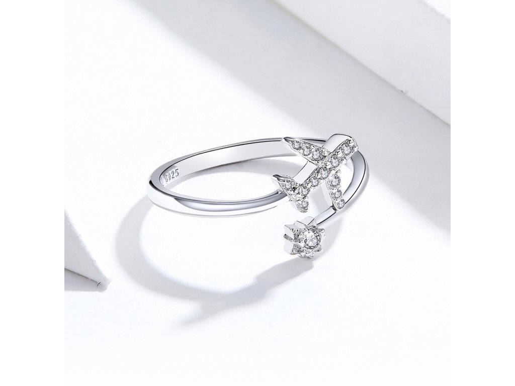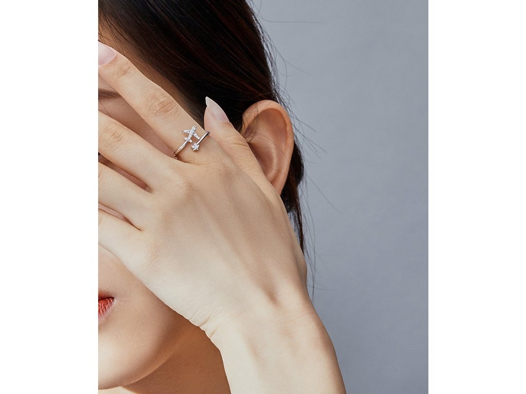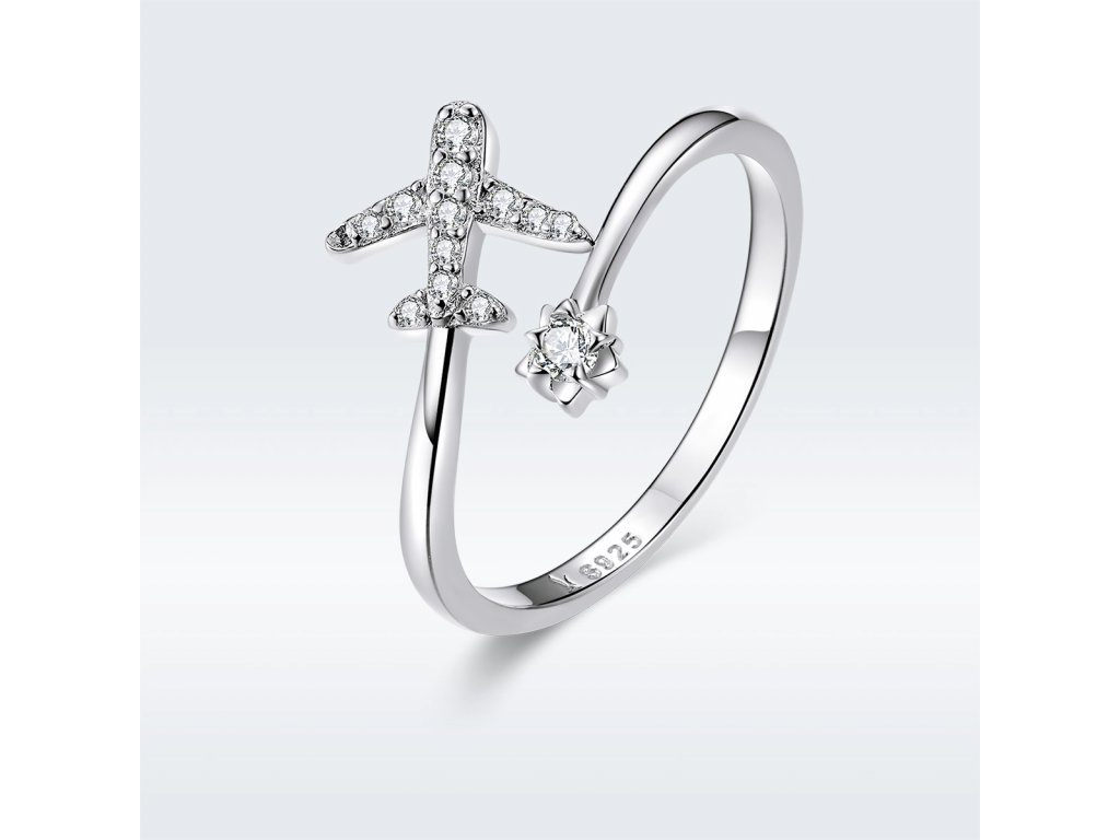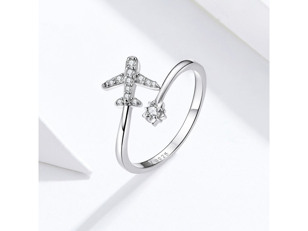 - Stříbrný nastavitelný a propracovaný prsten zdobený hvězdou a letadlem posázeným třpytivými kameny v podobě čirých zirkonů. Originální design prstenu, kvalitní zpracování a materiál, ručně dohotovené.