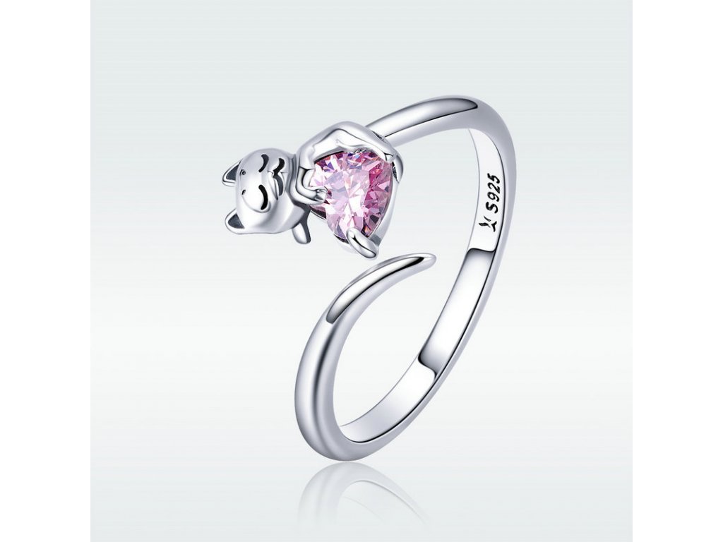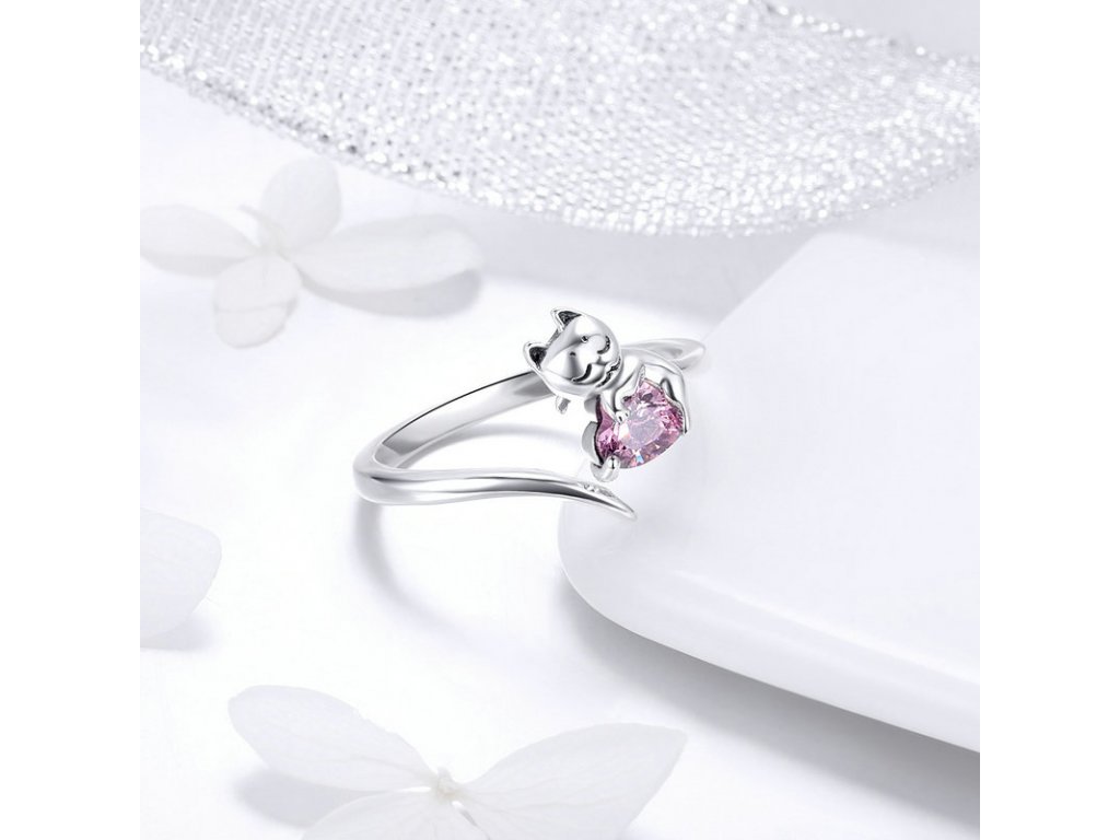 Elenys stříbrný nastavitelný prsten Milovaná kočka