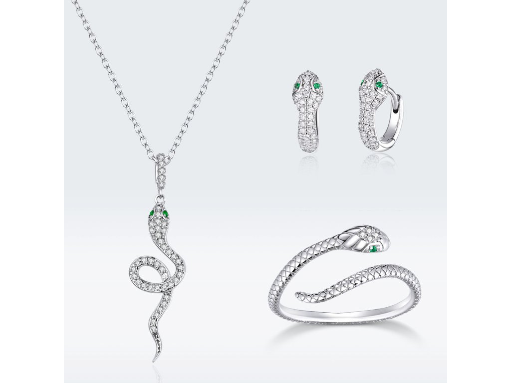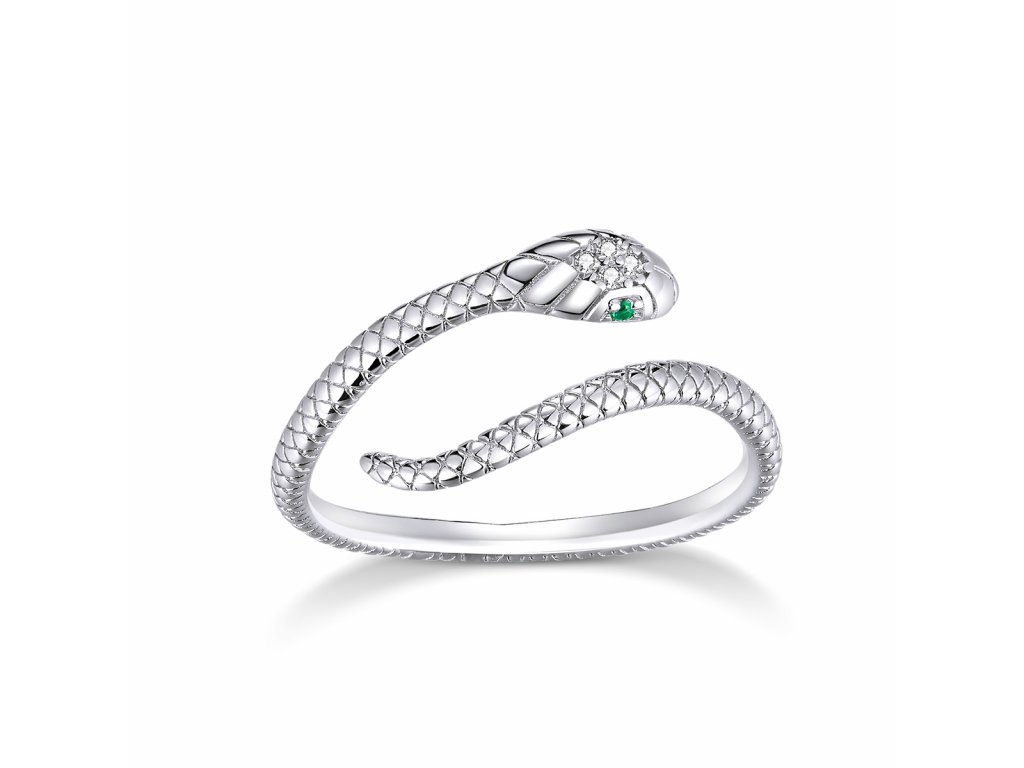 - Stříbrný nastavitelný prsten v designu Pohádkového hada zdobeného zelenými a čirými kameny v podobě třpytivých zirkonů. Originální design prstenu, kvalitní zpracování a materiál, ručně dohotovené.