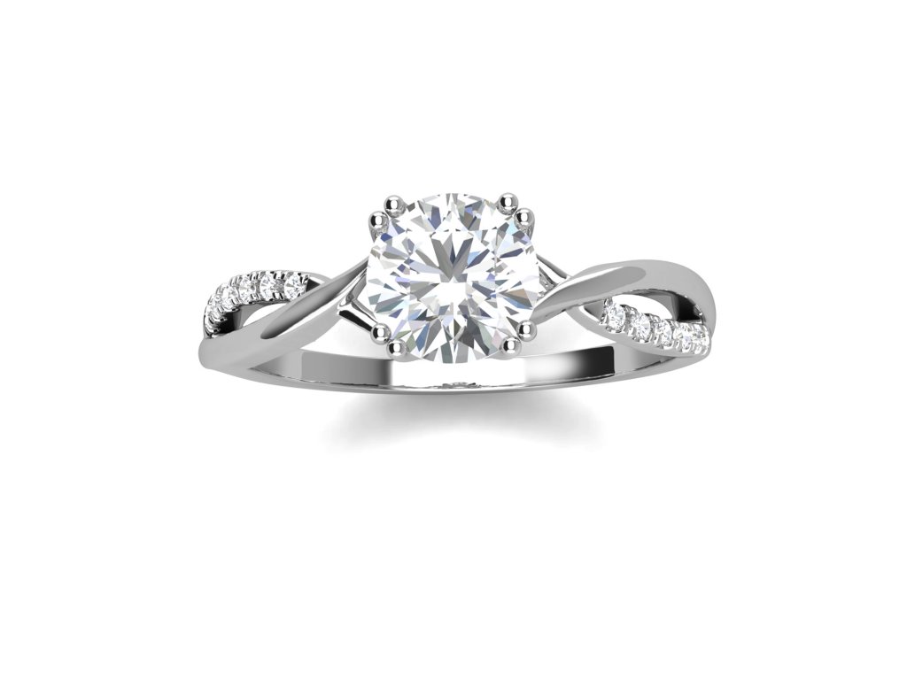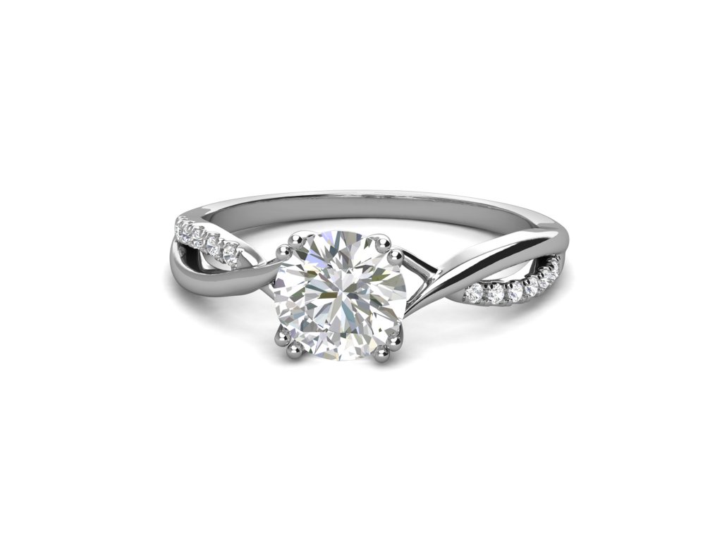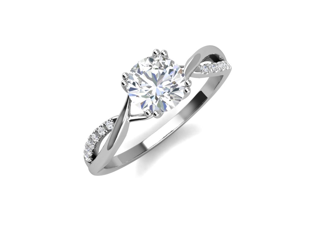 - Stříbrný pozlacený prsten 18k bílým zlatem zdobený zářivým drahokamem moissanitem a okolními třpytivými zirkony. Originální design prstenu, kvalitní zpracování a materiál, ručně dohotovené.