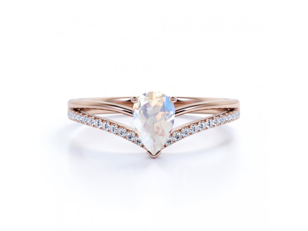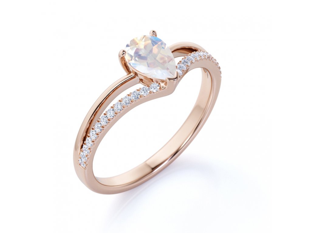 Elenys stříbrný prsten Drop s měsíčním drahokamem 14K růžové zlato Vermeil