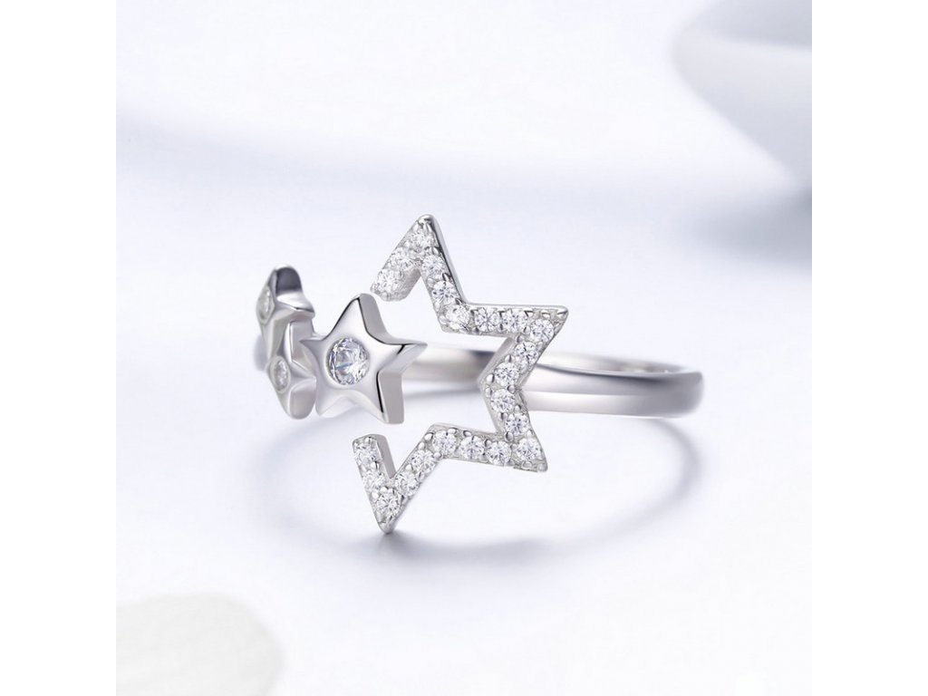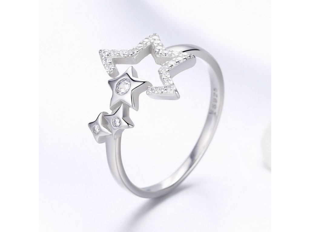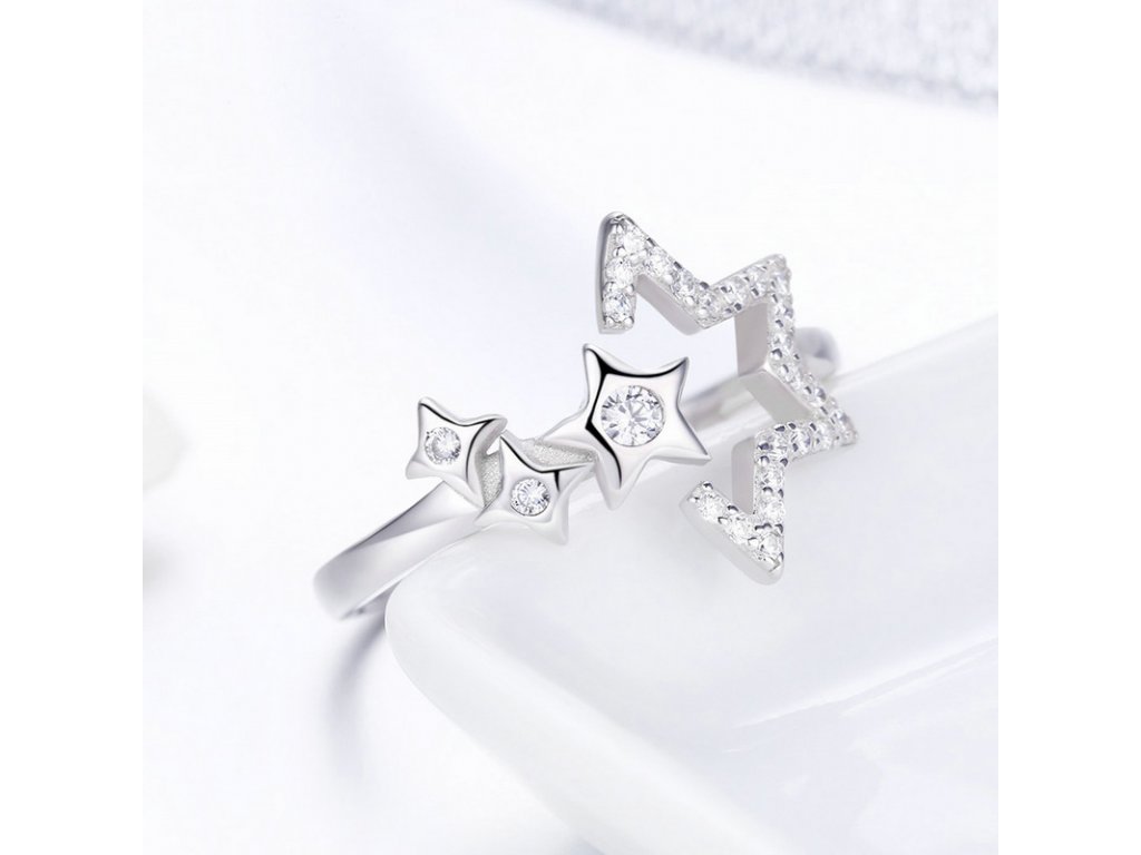 - Propracovaný stříbrný prsten v designu hvězdy splněných přání zdobený zirkony. Originální design prstenu, kvalitní zpracování a materiál, ručně dohotovené.