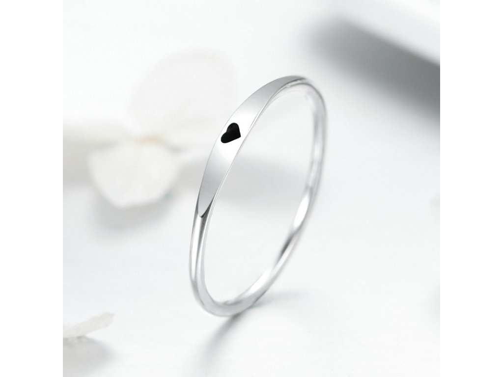 - Jemný stříbrný prsten dekorovaný srdcem s rušně nanášenou černou glazurou. Originální design prstenu, kvalitní zpracování a materiál, ručně dohotovené.