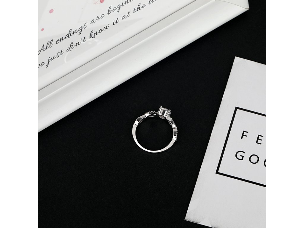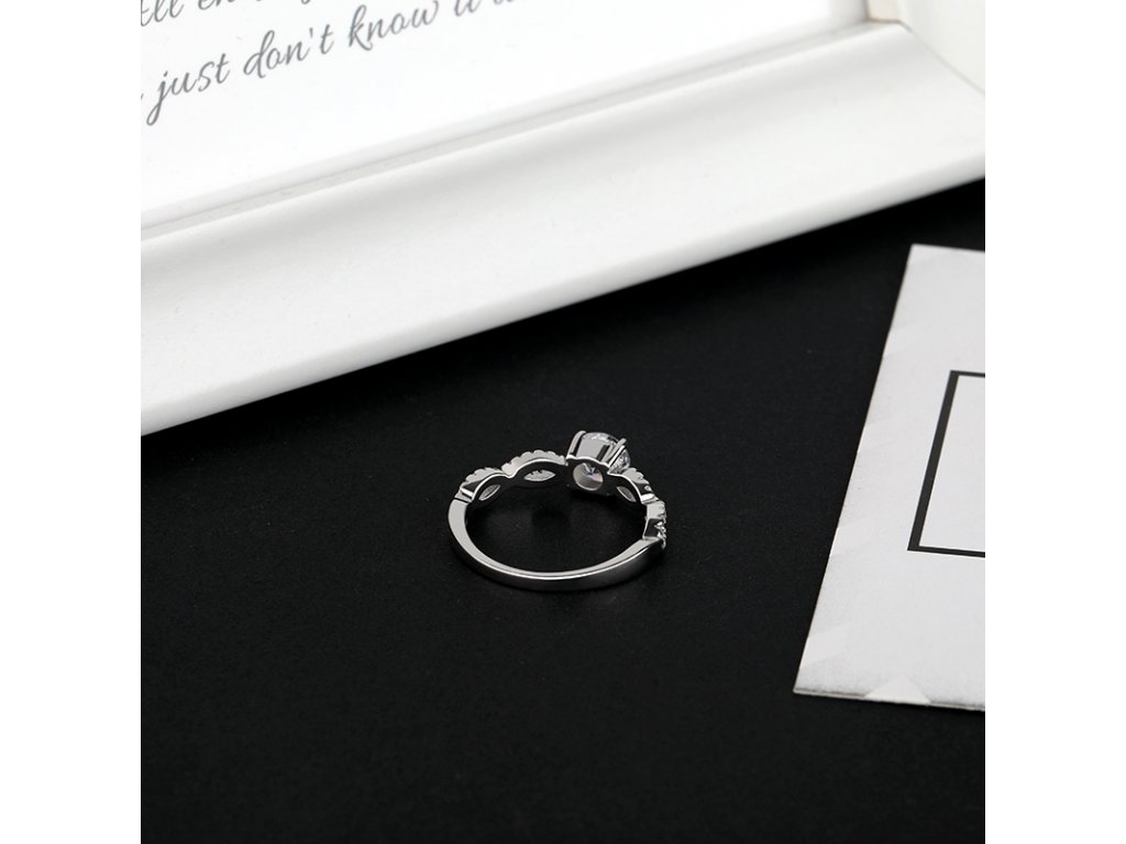 Elenys stříbrný rhodiovaný prsten s drahokamem moissanitem