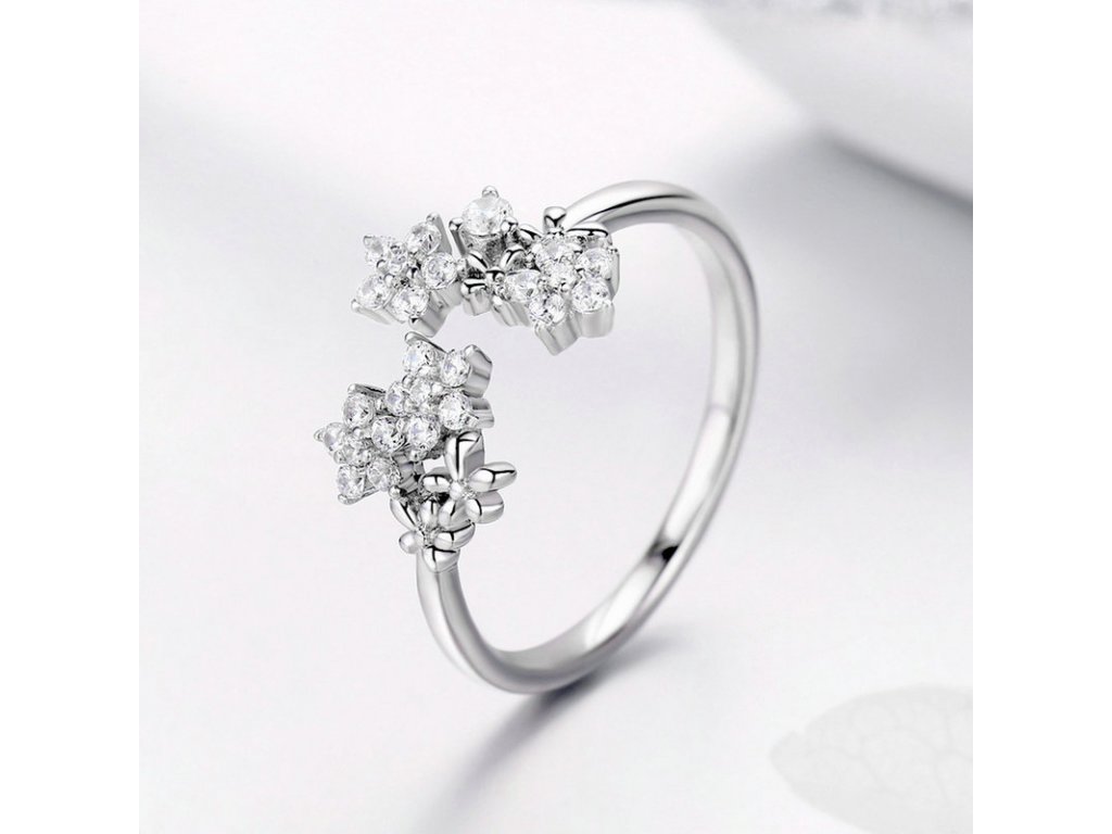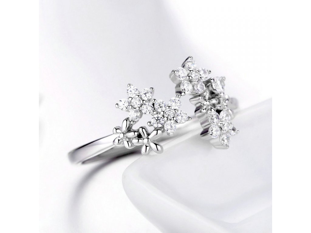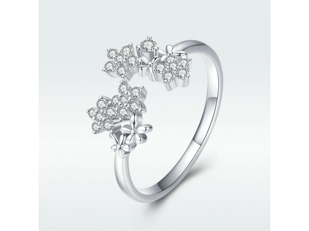 Stříbrný prsten v designu krásné květiny Gypsophila neboli nevěstin závoj. Stříbro 925/1000, zirkony. Velikost univerzální / nastavitelná. Šířka prstenu: 1.6 mm. Stříbro 925/1000, zirkony. DODÁVÁME BALENÉ V DÁRKOVÉM BALENÍ - ZDARMA.