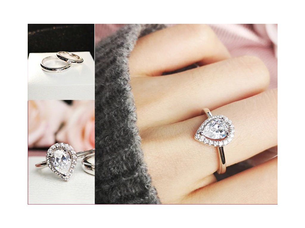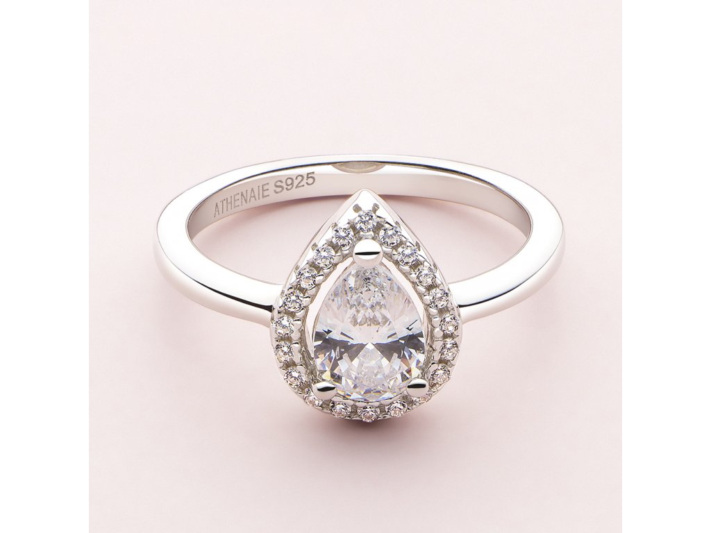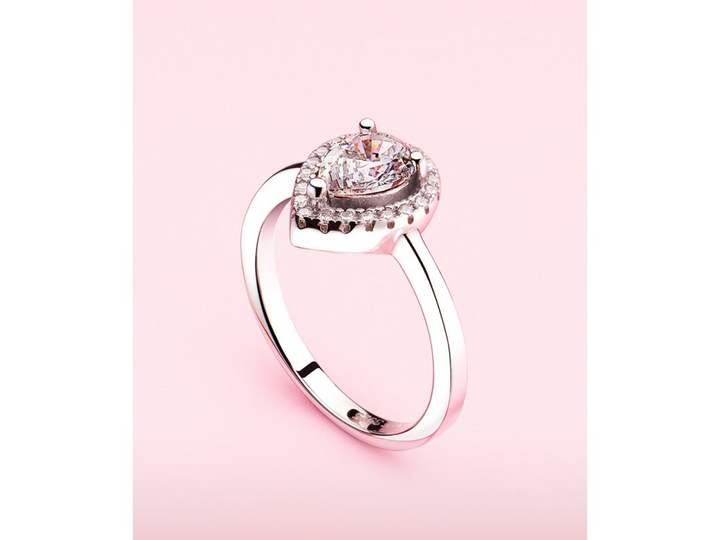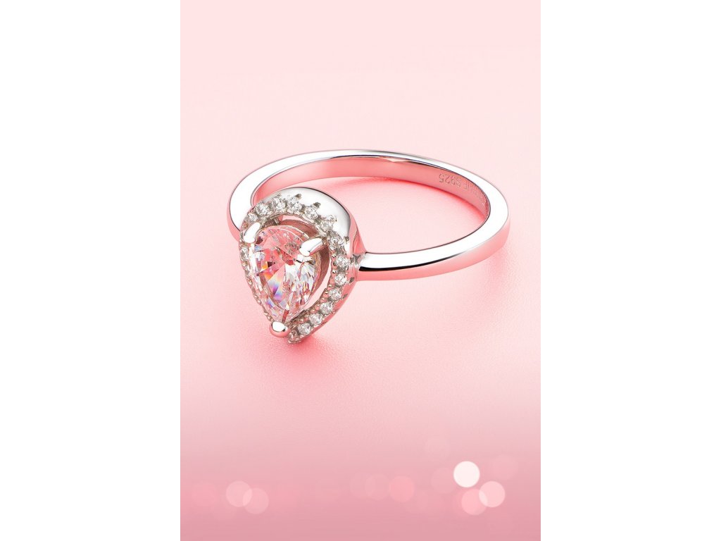 ♥ Stříbrný luxusní prsten v elegantním designu ve tvaru kapky zdobený třpytivými kameny v podobě čirých zirkonů. ♥