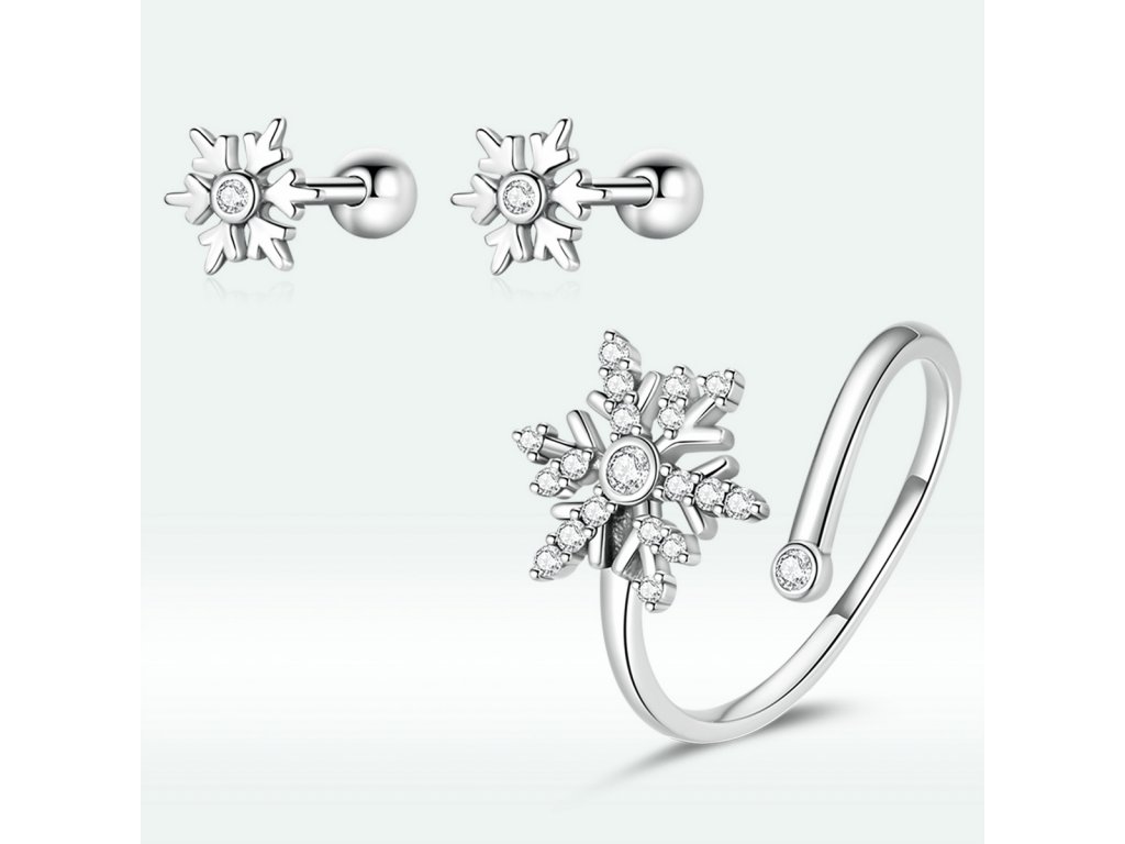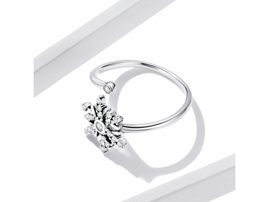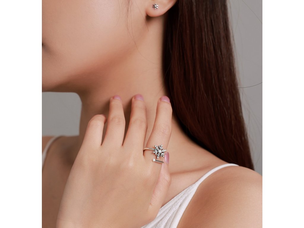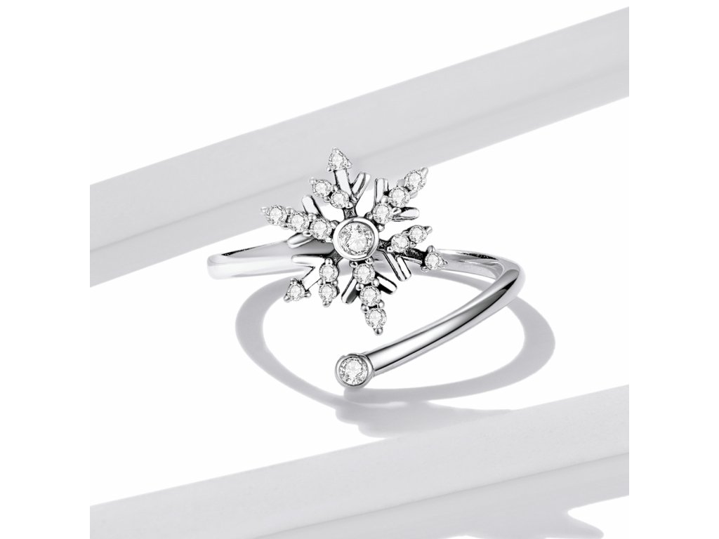 - Stříbrný nastavitelný prsten v designu Křišťálové vločky zdobené čirými třpytivými zirkony. Originální design prstenu, kvalitní zpracování a materiál, ručně dohotovené.