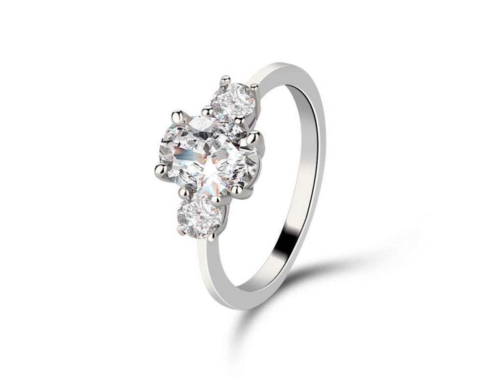 ♥ Stříbrný rhodiovaný prsten v designu Křišťálového kouzla tvořeného třemi čirými třpytivými zirkony. Originální design prstenu, kvalitní zpracování a materiál, ručně dohotovené. ♥
