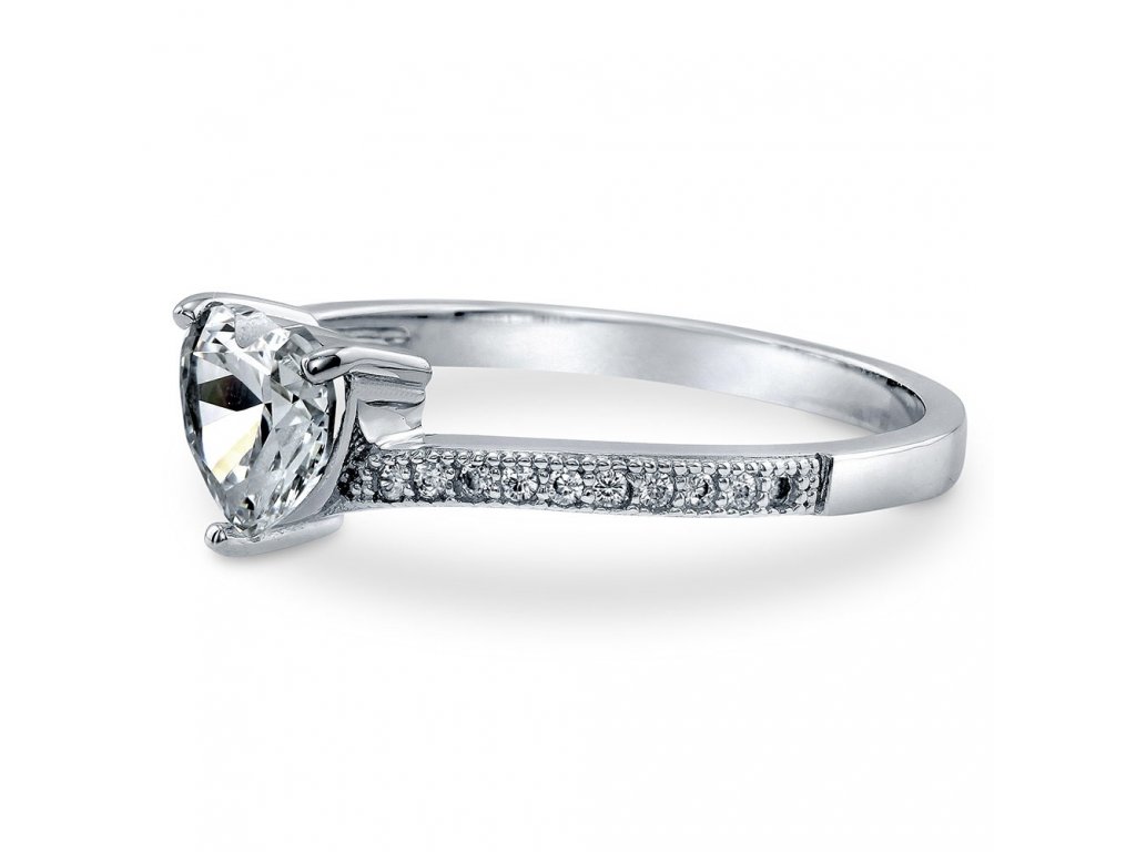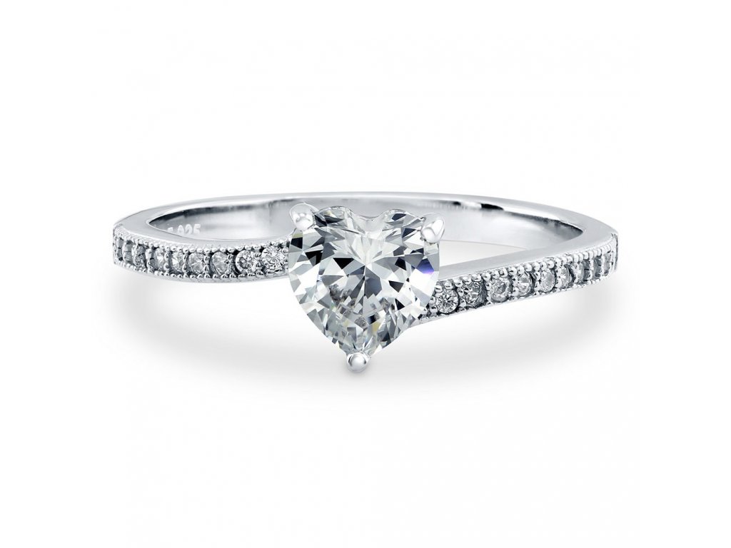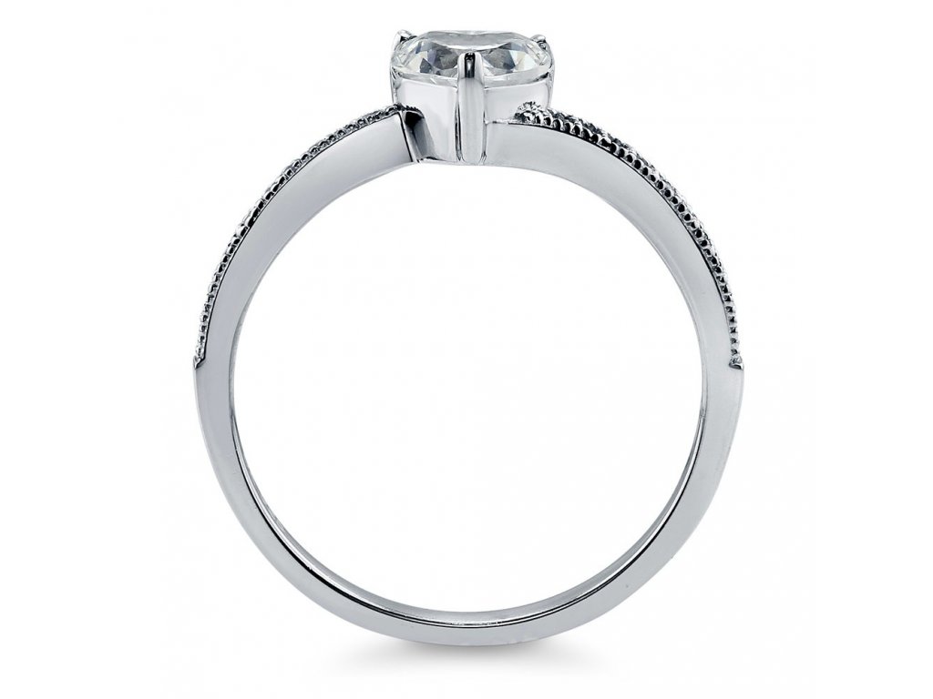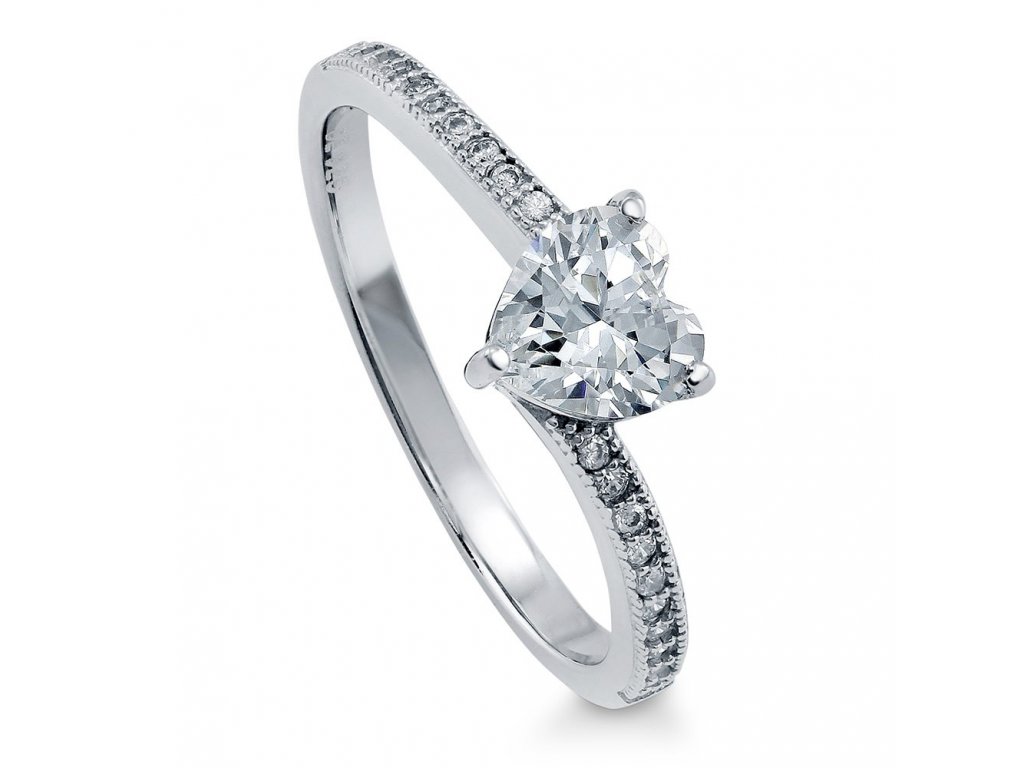 ♥ Stříbrný rhodiovaný prsten v designu Čisté lásky zdobený čirými třpytivými zirkony a velkým broušeným kamenem ve tvaru srdce. Originální design prstenu, kvalitní zpracování a materiál, ručně dohotovené. ♥