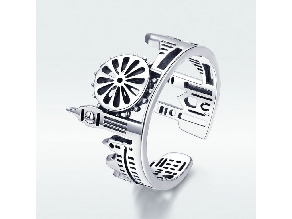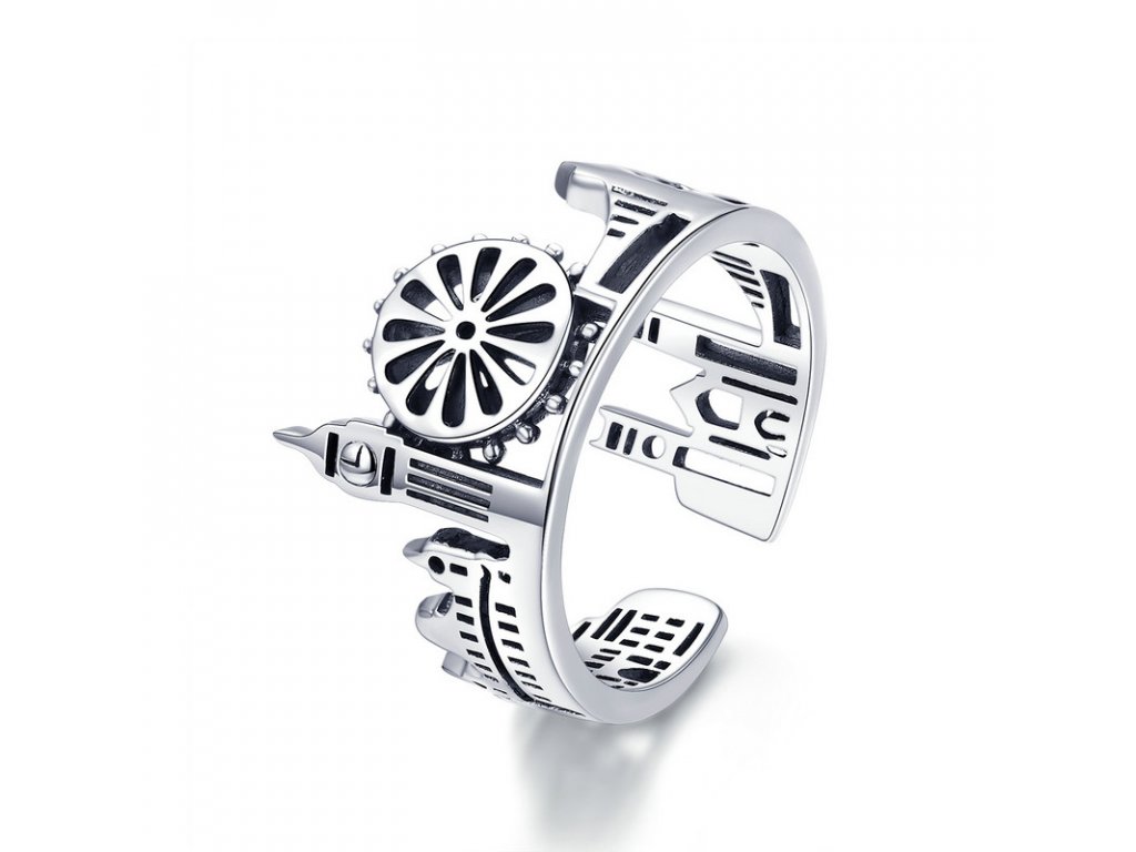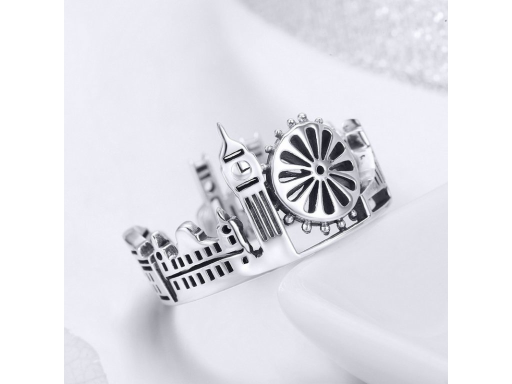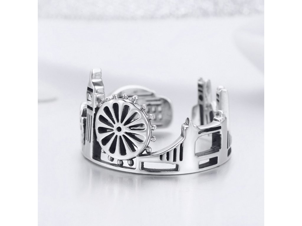 - Originální stříbrný prsten s jemnými výřezy v designu Londýna. Originální design prstenu, kvalitní zpracování a materiál, ručně dohotovené.