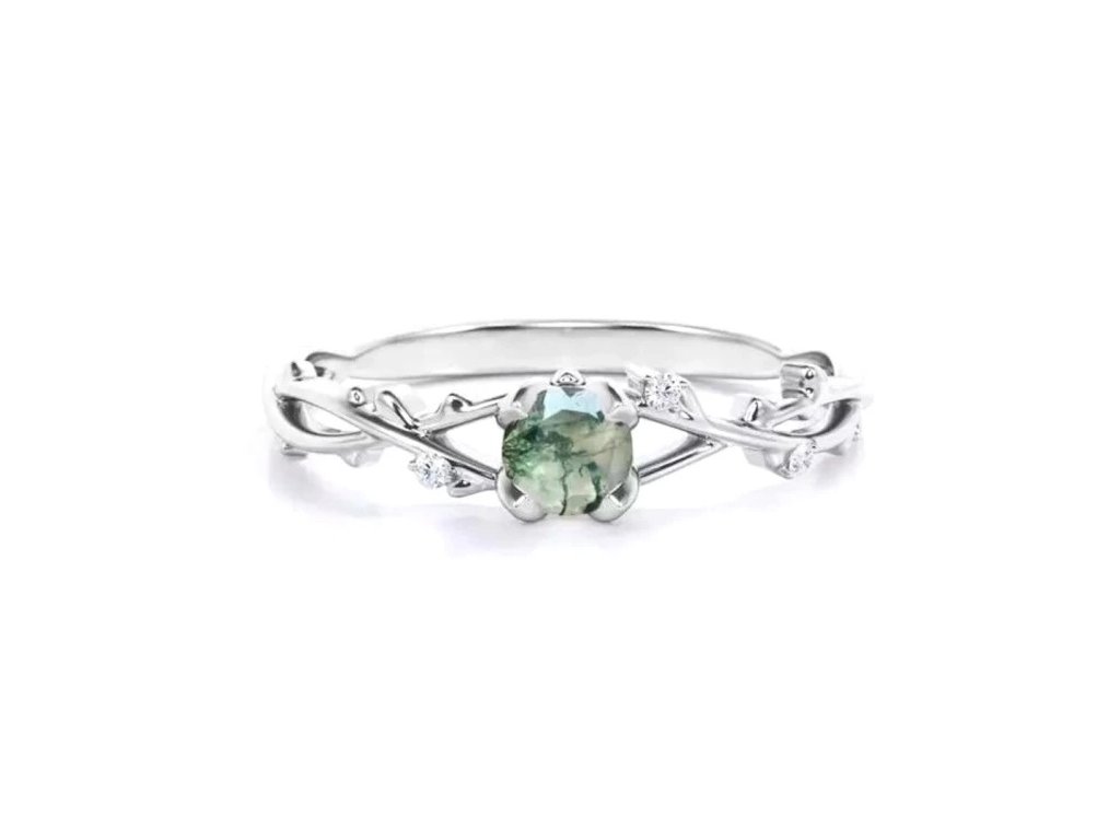 - Stříbrný prsten osazený drahokamem mechovým achátem. Originální design prstenu, kvalitní zpracování a materiál, ručně dohotovené.