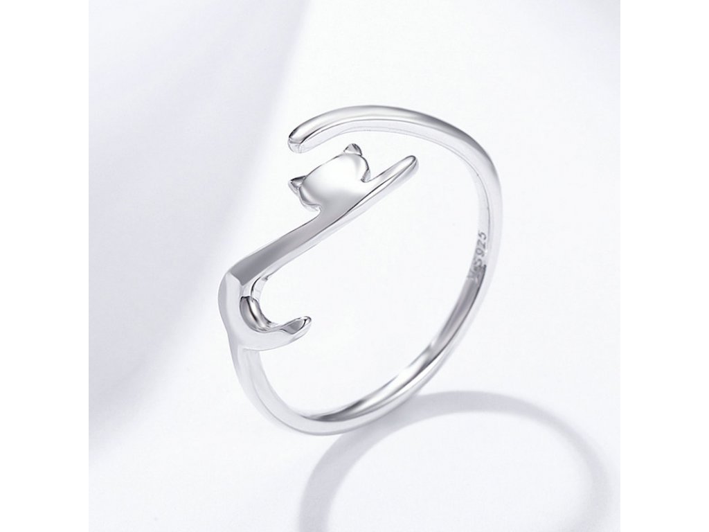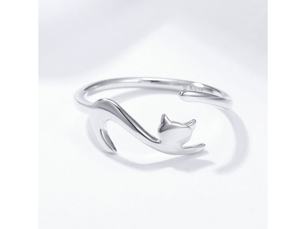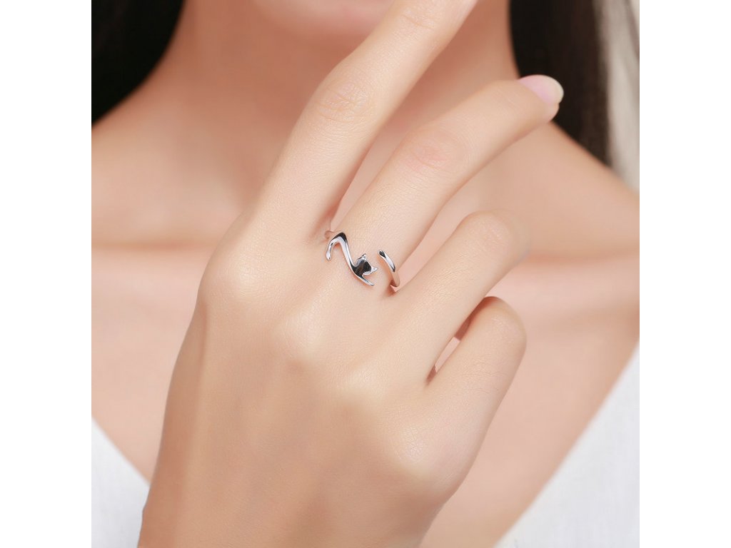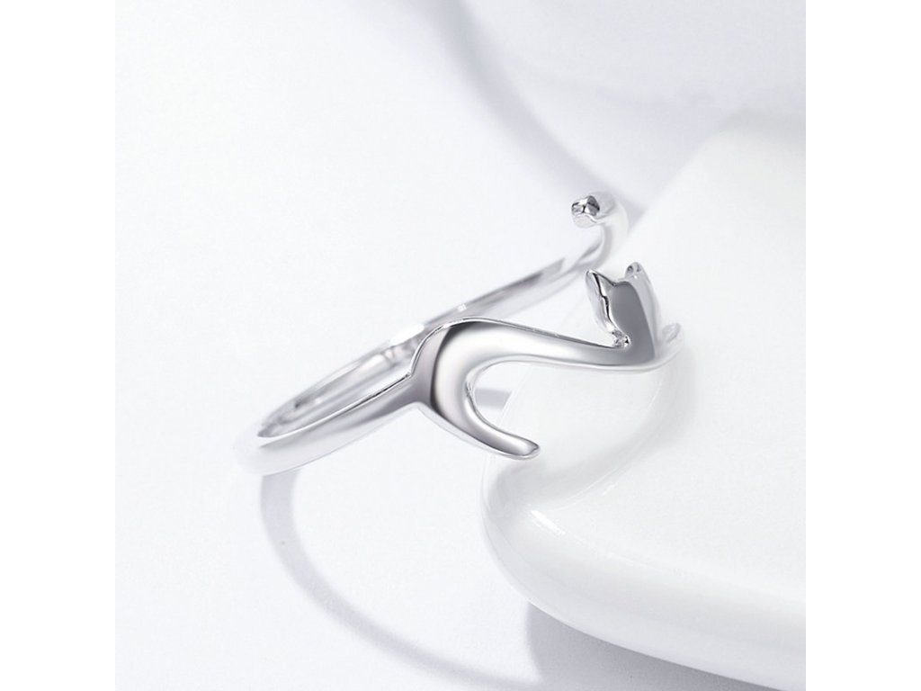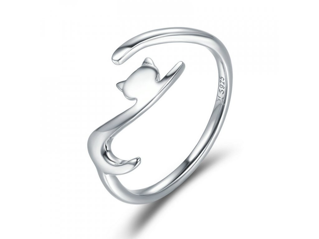Luxusní a romantický prsten z kvalitního stříbra v designu hravé kočky.