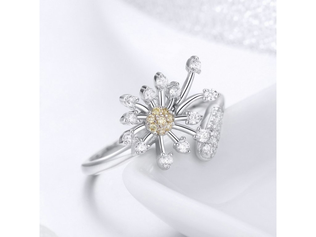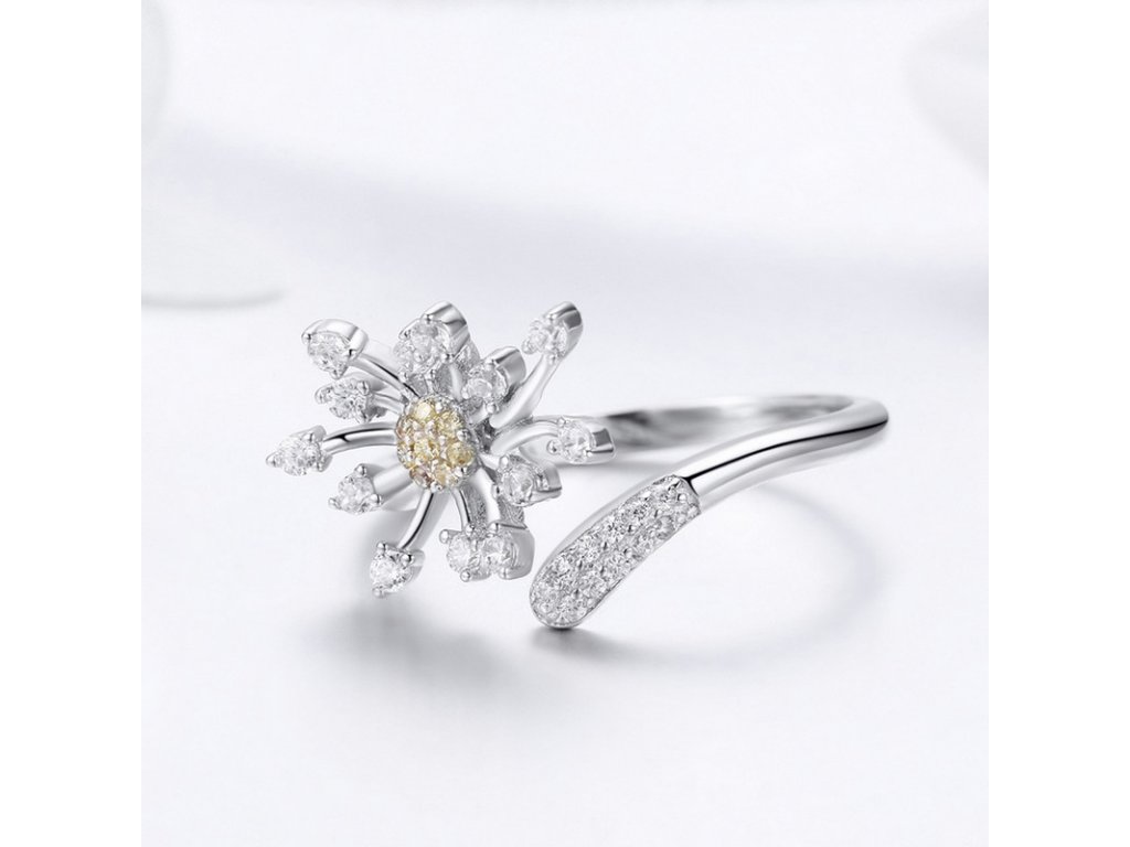 - Krásný a elegantní stříbrný prsten ve tvaru pampelišky obohacený třpytivými zirkony. Originální design prstenu, kvalitní zpracování a materiál, ručně dohotovené.