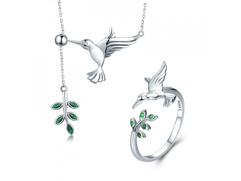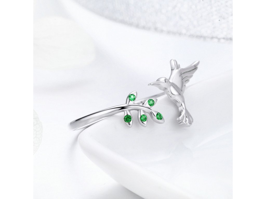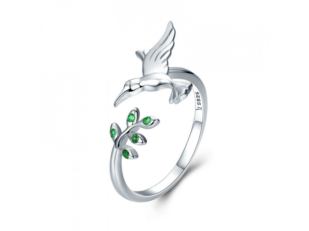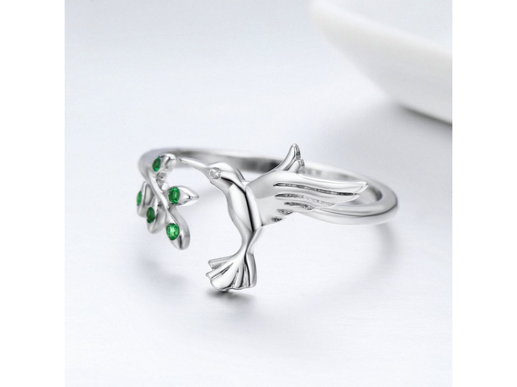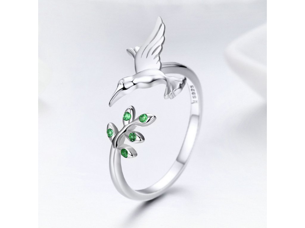 - Luxusní stříbrný prsten, kterému dominuje poletavý kolibřík a lístky zvýrazněny zářivými zelenými zirkony. Originální design prstenu, kvalitní zpracování a materiál, ručně dohotovené. Slaďte prsten s ostatními šperky značky Royal Fashion a vytvořte tak neodolatelný set.