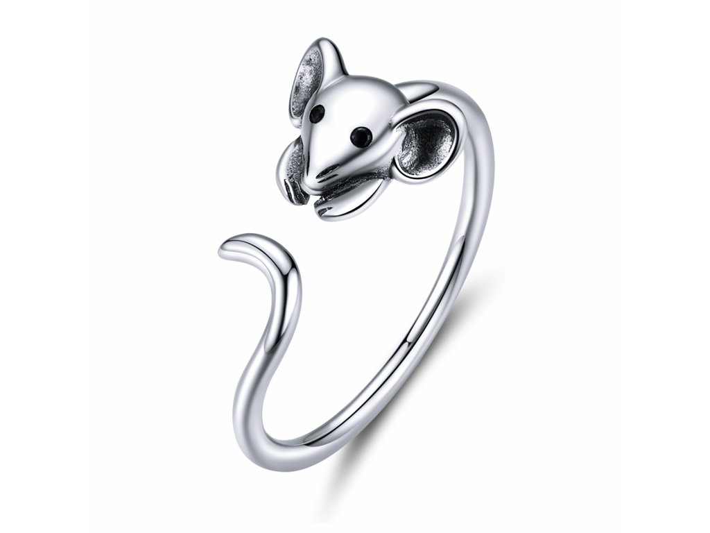 - Stříbrný nastavitelný a propracovaný prsten v designu Roztomilé myšky zdobené smaltem a černými zirkony. Originální design prstenu, kvalitní zpracování a materiál, ručně dohotovené.