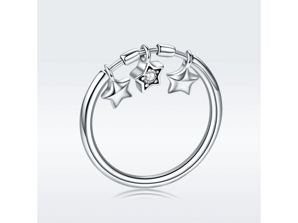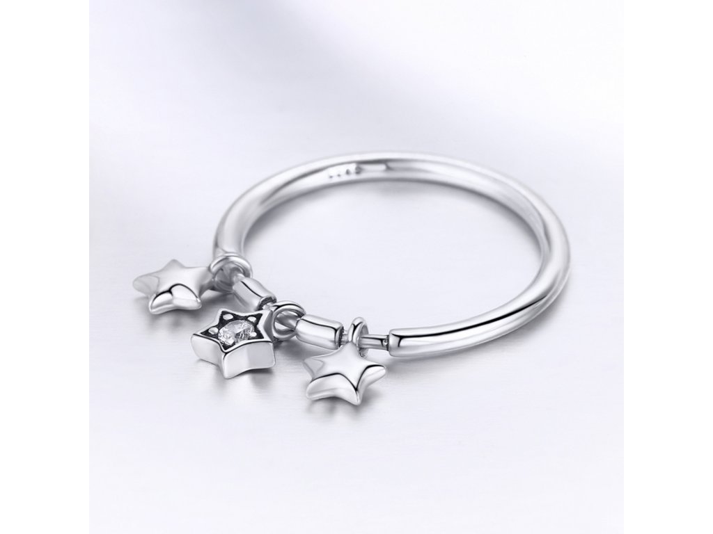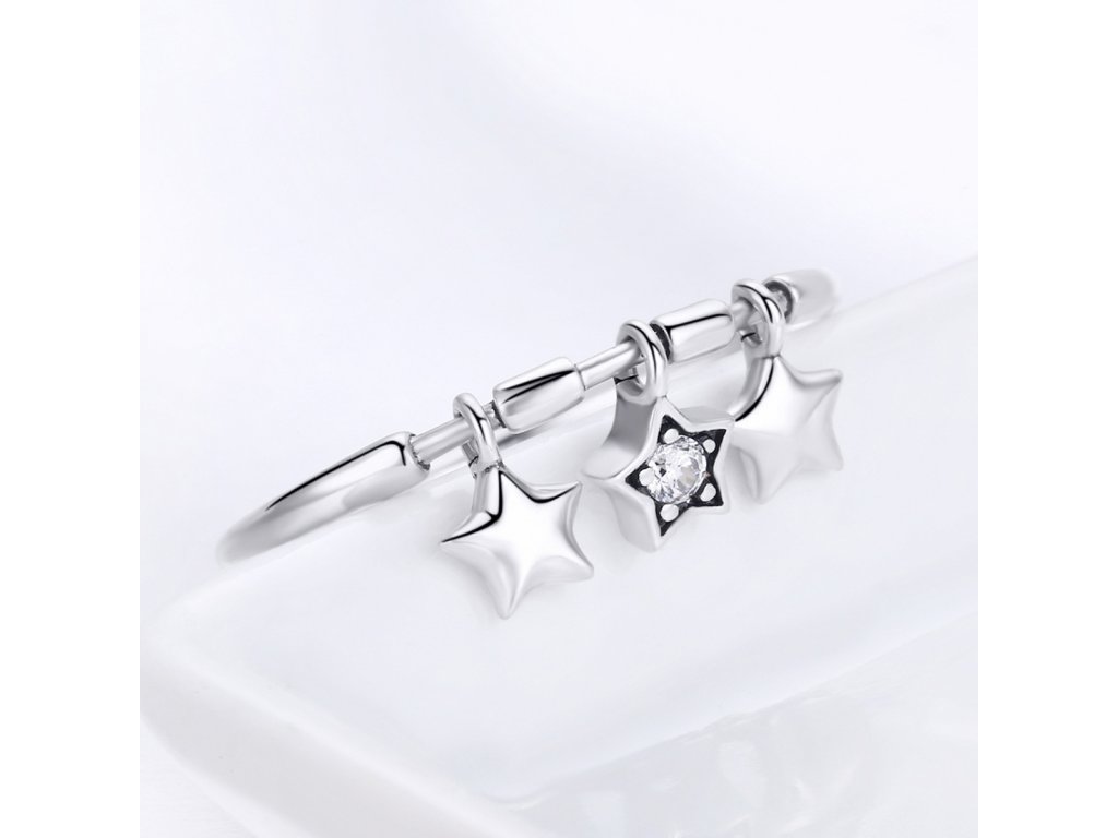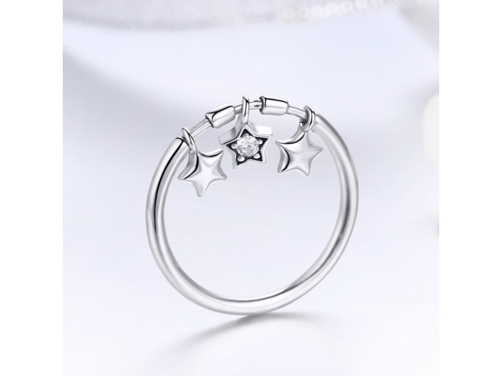 - Propracovaný stříbrný prsten v designu padající hvězdy zdobený zirkony.
