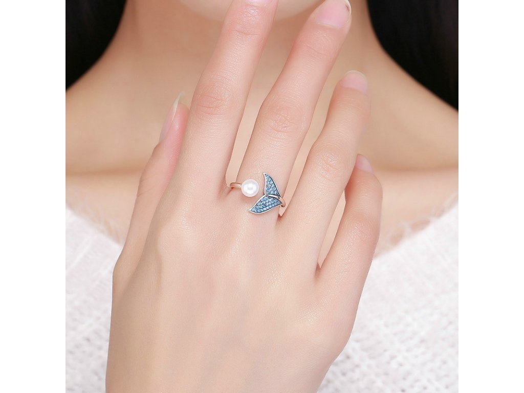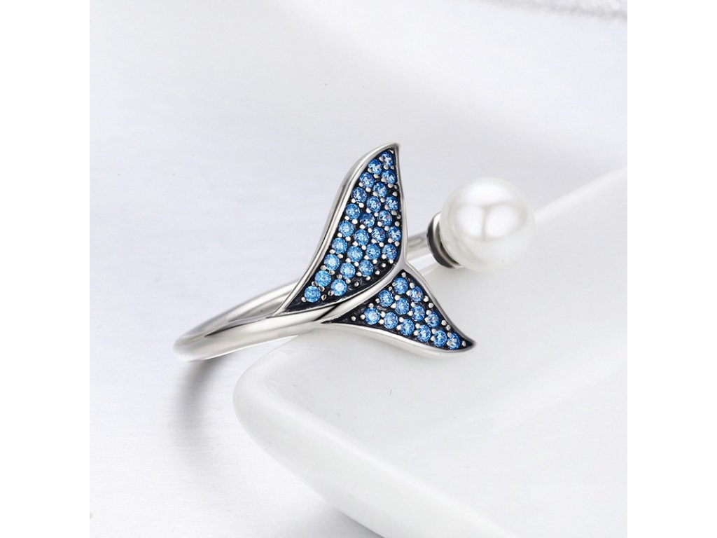 - Luxusní stříbrný prsten, kterému dominuje jemná perla a ploutev zvýrazněna zářivými modrými zirkony. Originální design prstenu, kvalitní zpracování a materiál, ručně dohotovené. Slaďte prsten s ostatními šperky značky Royal Fashion a vytvořte tak neodolatelný set.